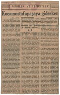 A. Adnan Adıvar'ın köşe yazısı ve Şehrin Sesi gazete kupürleri, Mehmed Said imzalı "Kıyamet ne zaman kopacak" başlıklı dergi sayfaları ve Kocamustafapaşa Camii'ne ilişkin notların yer aldığı defter