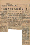 İSMAİL USTA (Hacı) – Geçen asır başlarında namlı bir yangın tulumbası yapıcısı ;Karacaahmedde Miskinler Tekkesi yakınında bulunan kabir taşının üst kısmında bir ağır çardaklı yangın tulumbası kabartması bulunuyordu ki o yönden benzeri bulunmayan,dikkat...