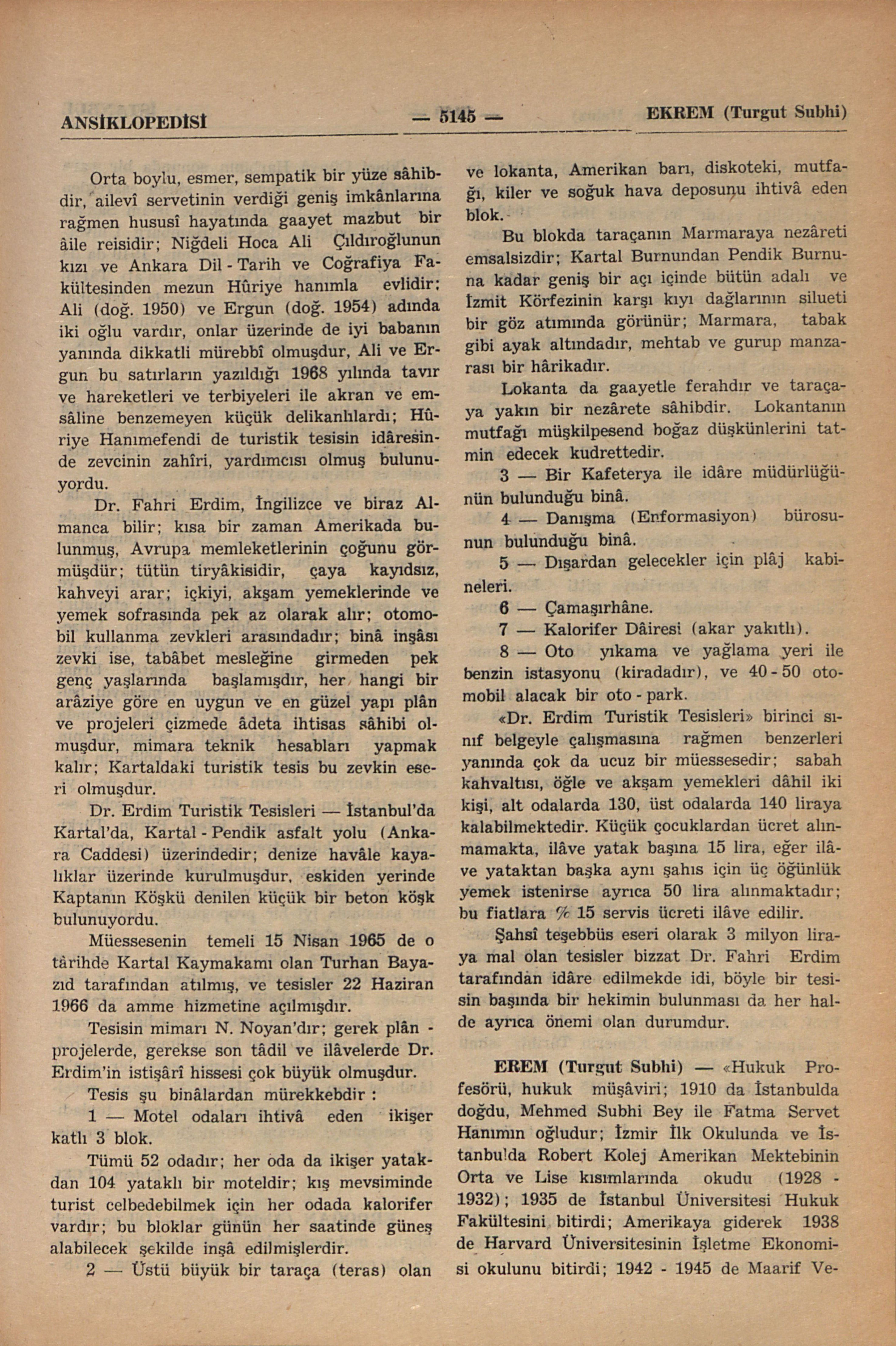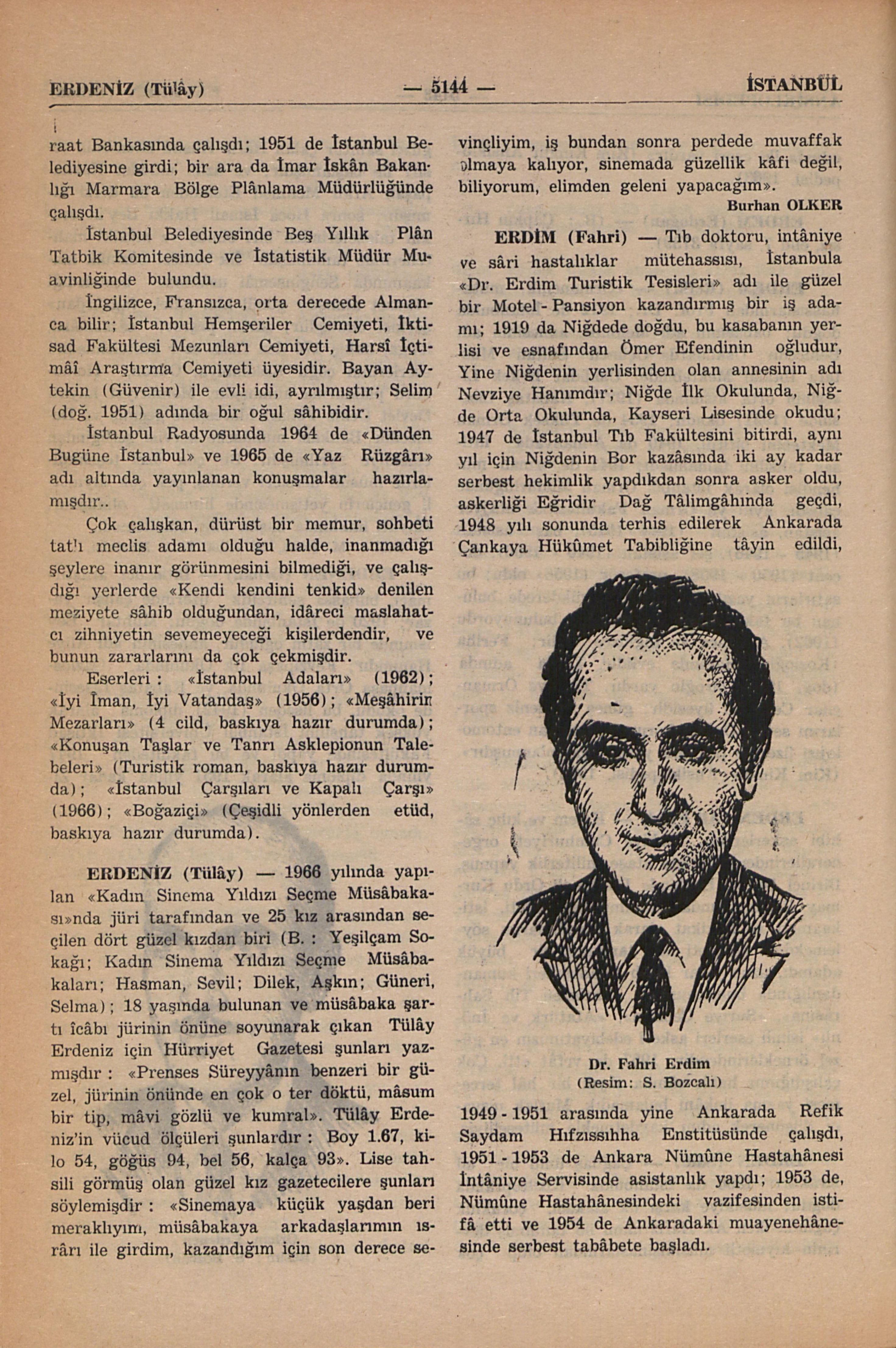 Tıb doktoru, intâniye ve sâri hastalıklar mütehassısı, İstanbula “Dr. Erdim Turistik Tesisleri” adı ile güzel bir Motel - Pansiyon kazandırmış bir iş adamı; 1919 da Niğdede doğdu, bu kasabanın yerlisi ve esnafından Ömer Efendinin oğludur, Yine Niğdenin yerlisinden olan annesinin adı Nevziye Hanımdır; Niğde İlk Okulunda, Niğde Orta Okulunda, Kayseri Lisesinde okudu; 1947 de İstanbul Tıb Fakültesini bitirdi, aynı yıl için Niğdenin Bor kazâsında iki ay kadar serbest hekimlik yapdıkdan sonra asker oldu, askerliği Eğridir Dağ Tâlimgâhında geçdi, 1948 yılı sonunda terhis edilerek Ankarada Çankaya Hükûmet Tabibliğine tâyin edildi, 1949 - 1951 arasında yine Ankarada Refik Saydam Hıfzıssıhha Enstitüsünde çalışdı, 1951 - 1953 de Ankara Nümûne Hastahânesi İntâniye Servisinde asistanlık yapdı; 1953 de, Nümûne Hastahânesindeki vazifesinden istifâ etti ve 1954 de Ankaradaki muayenehânesinde serbest tabâbete başladı.