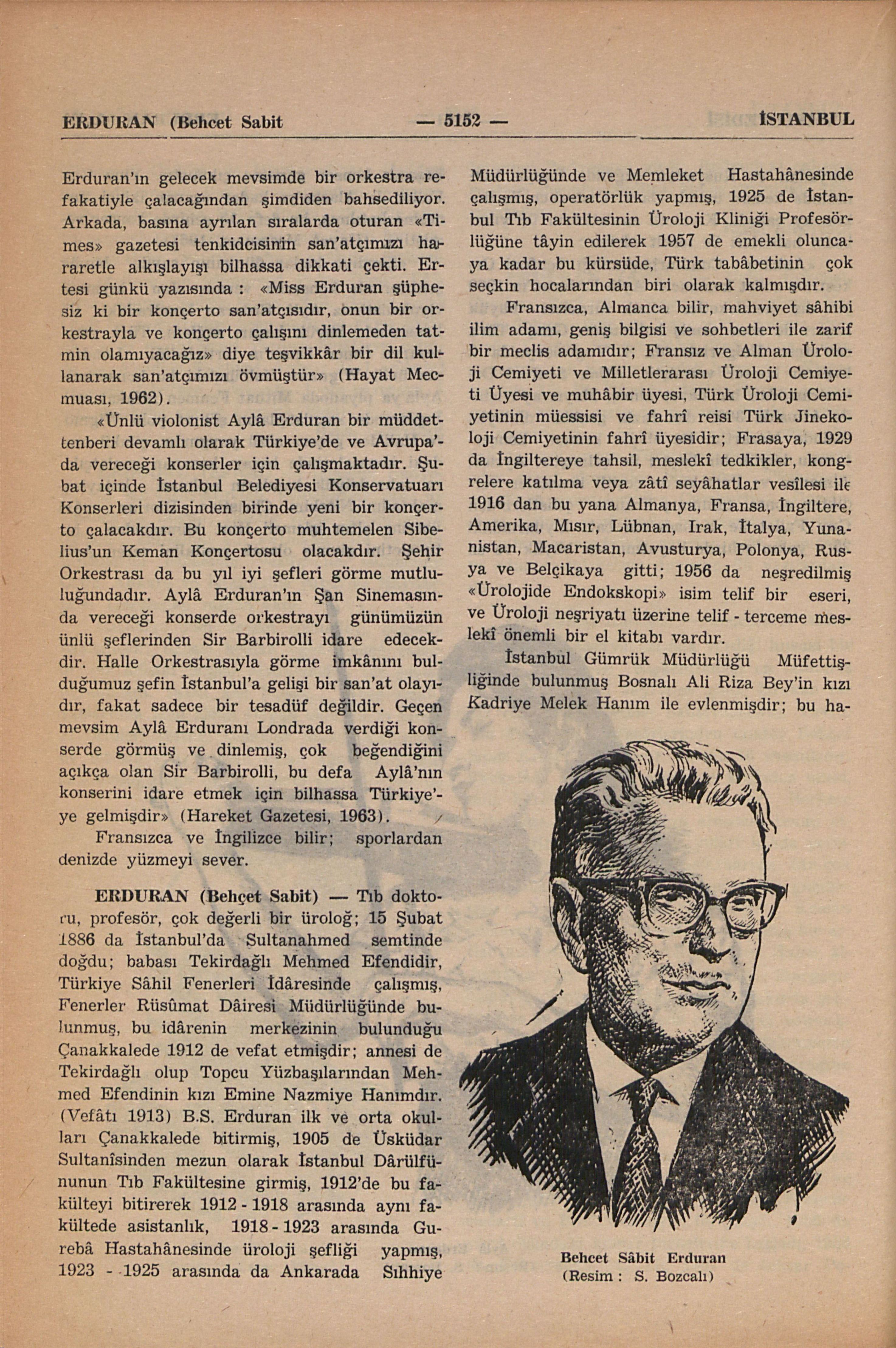 “Ünlü violonist Aylâ Erduran bir müddetenberi devamlı olarak Türkiye’de ve Avrupa’da vereceği konserler için çalışmaktadır. Şubat içinde İstanbul Belediyesi Konservatuarı Konserleri dizisinden birinde yeni bir konçerto çalacakdır. Bu konçerto muhtemelen Sibelius’un Keman Konçertosu olacakdır. Şehir Orkestrası da bu yıl iyi şefleri görme mutluluğundadır. Aylâ Erduran’ın Şan Sinemasında vereceği konserde orkestrayı günümüzün ünlü şeflerinden Sir Barbirolli idare edecekdir. Halle Orkestrasıyla görme imkânını bulduğumuz şefin İstanbul’a gelişi bir san’at olayıdır, fakat sadece bir tesadüf değildir. Geçen mevsim Aylâ Erduranı Londrada verdiği konserde görmüş ve dinlemiş, çok beğendiğini açıkça olan Sir Barbirolli, bu defa Aylâ’nın konserini idare etmek için bilhassa Türkiye’ye gelmişdir” (Hareket Gazetesi, 1963).