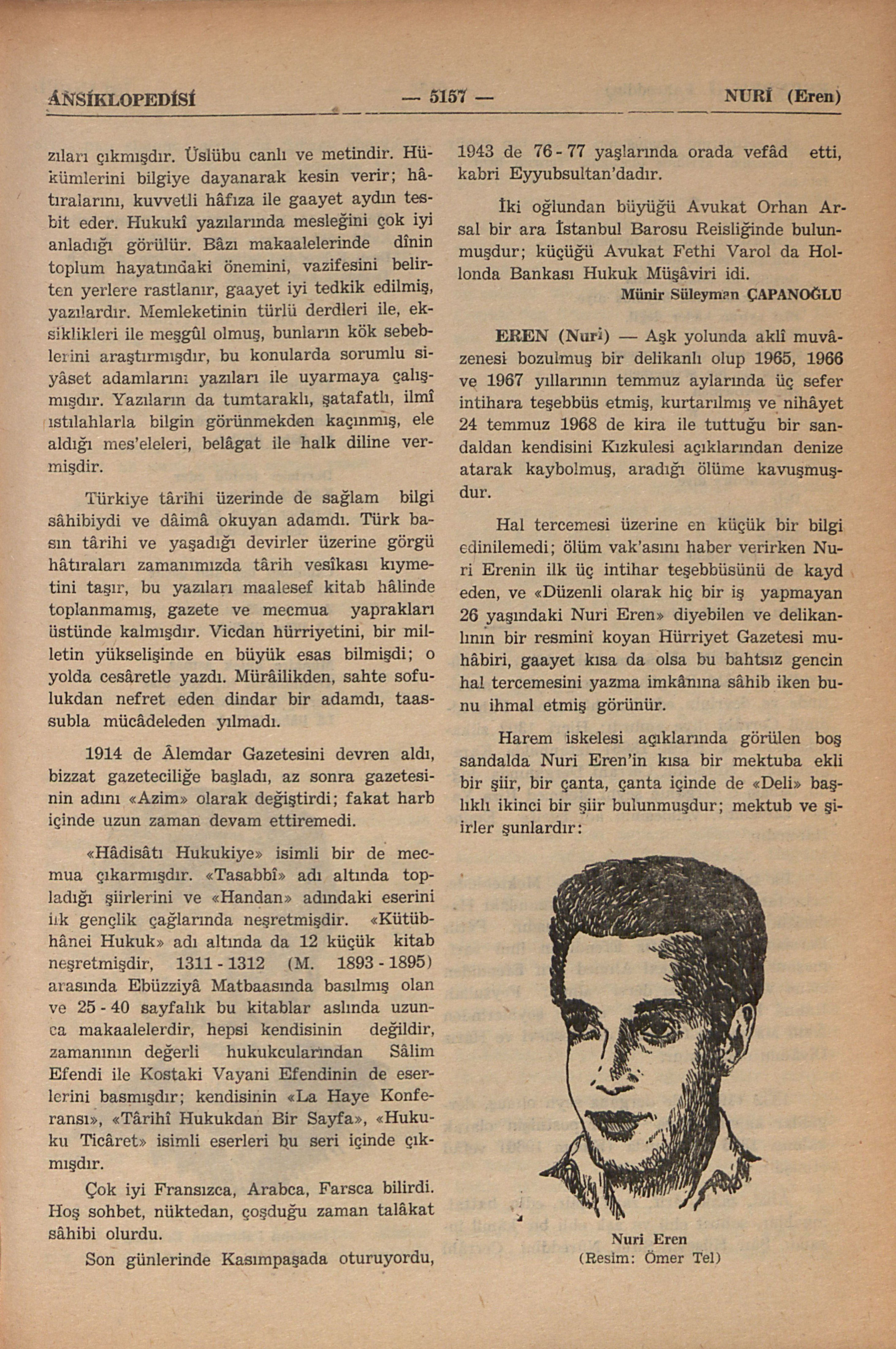 Ünlü avukat ve muharrir; hicrî 1284 (M. 1867 - 1868) de Selânikde doğdu; avukat Osman Nuri Efendinin oğlu, Selânik Mevlevîhânesi Şeyhi Cevâhirci Derviş Ali Efendinin torunudur; annesinin adı Fatma Hanımdır. İlk ve rüşdiye tahsilini Selânikde yapdı, 1301 (M. 1883 - 1884) de İstanbula gelerek Hukuk Mektebine girdi, yazı yazmaya büyük bir hevesle çocukluğunda başlamışdı, 1299 (M. 1881 - 1882) se Selânik Resmî Vilâyet Gazetesinde târihî bir konu üzerine ilk makaalesi çıkmışdır ki o tarihde henüz 14 - 15 yaşlarında bir çocuk idi; İstanbula gelir gelmez günleri Hukuk Mektebi ile gazete idârehânelerinde geçmeye başladı. Kendisi şöyle anlatıyor : “Son derece utangaç, çekingen bir genç idim. Hukuk Mektebinde dersler öğleye kadardı, Ayasofya Camiin Üçüncü Sultan Ahmed Meydan Çeşmesi karşısındaki kapusuna bitişik aşçı dükkânında mekteb arkadaşlarımla yarım pilâv ve yarım tas kebabı yer, sonra Terceman Matbaasına giderdim. Gazeteye devamım gönüllü idi, muvazzaf değildim; Tevfik Efendi adında birinin yanında yamak gibi çalışırdım. Bu zat beni gazetede kimse ile tanıştırmamışdır. Ahmed Mithad Efendi benim Tercemanda çalışdığımı hiç bilmemişdir”. Şiir ile de meşgul olmuşdu; ilk manzûmesini de yine Selânikde iken H. 1296 (M. 1878 - 1879) da 11 - 12 yaşlarında yazmışdır, bir münacaattır, ilk bey...