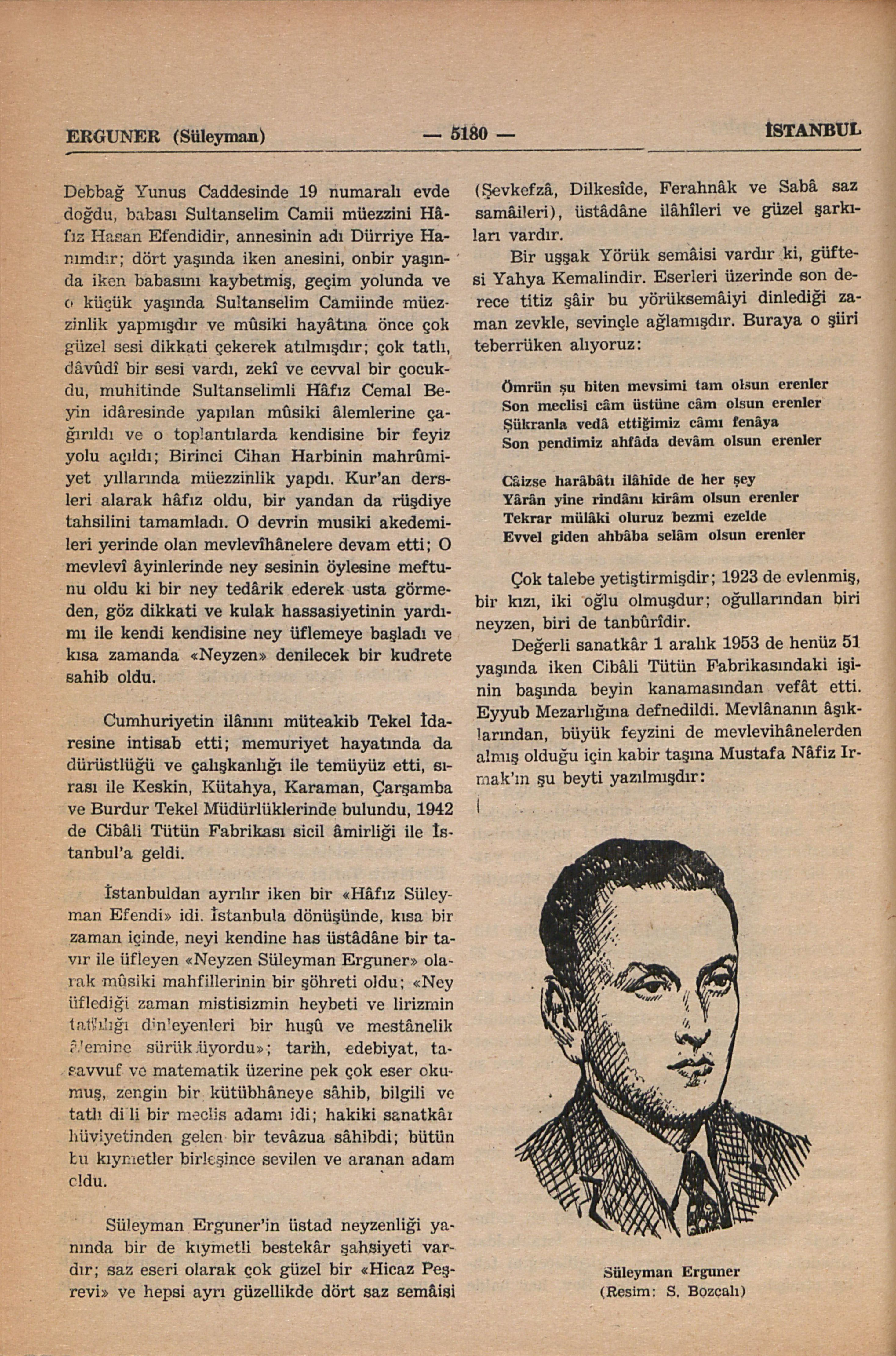 Çağdaş Türk mûsikisinin üstadlarından, kıymetli bir neyzen ve bestekâr; 15 ağustos 1902 de İstanbulda Sultanselim semtinde Abdisübaşı Mahallesinde Debbağ Yunus Caddesinde 19 numaralı evde doğdu, babası Sultanselim Camii müezzini Hâfız Hasan Efendidir, annesinin adı Dürriye Hanımdır; dört yaşında iken anesini, onbir yaşında iken babasını kaybetmiş, geçim yolunda ve o küçük yaşında Sultanselim Camiinde müezzinlik yapmışdır ve mûsiki hayâtına önce çok güzel sesi dikkati çekerek atılmışdır; çok tatlı, dâvûdî bir sesi vardır, zekî ve cevval bir çocukdu, muhitinde Sultanselimli Hâfız Cemal Beyin idâresinde yapılan mûsiki âlemlerine çağırıldı ve o toplantılarda kendisine bir feyiz yolu açıldı; Birinci Cihan Harbinin mahrûmiyet yıllarında müezzinlik yapdı. Kur’an dersleri alarak hâfız oldu, bir yandan da rüşdiye tahsilini tamamladı. O devrin musiki akedemileri yerinde olan mevlevîhânelere devam etti; O mevlevî âyinlerinde ney sesinin öylesine meftunu oldu ki bir ney tedârik ederek usta görmeden, göz dikkati ve kulak hassasiyetinin yardımı ile kendi kendisine ney üflemeye başladı ve kısa zamanda “Neyzen” denilecek bir kudrete sahib oldu.