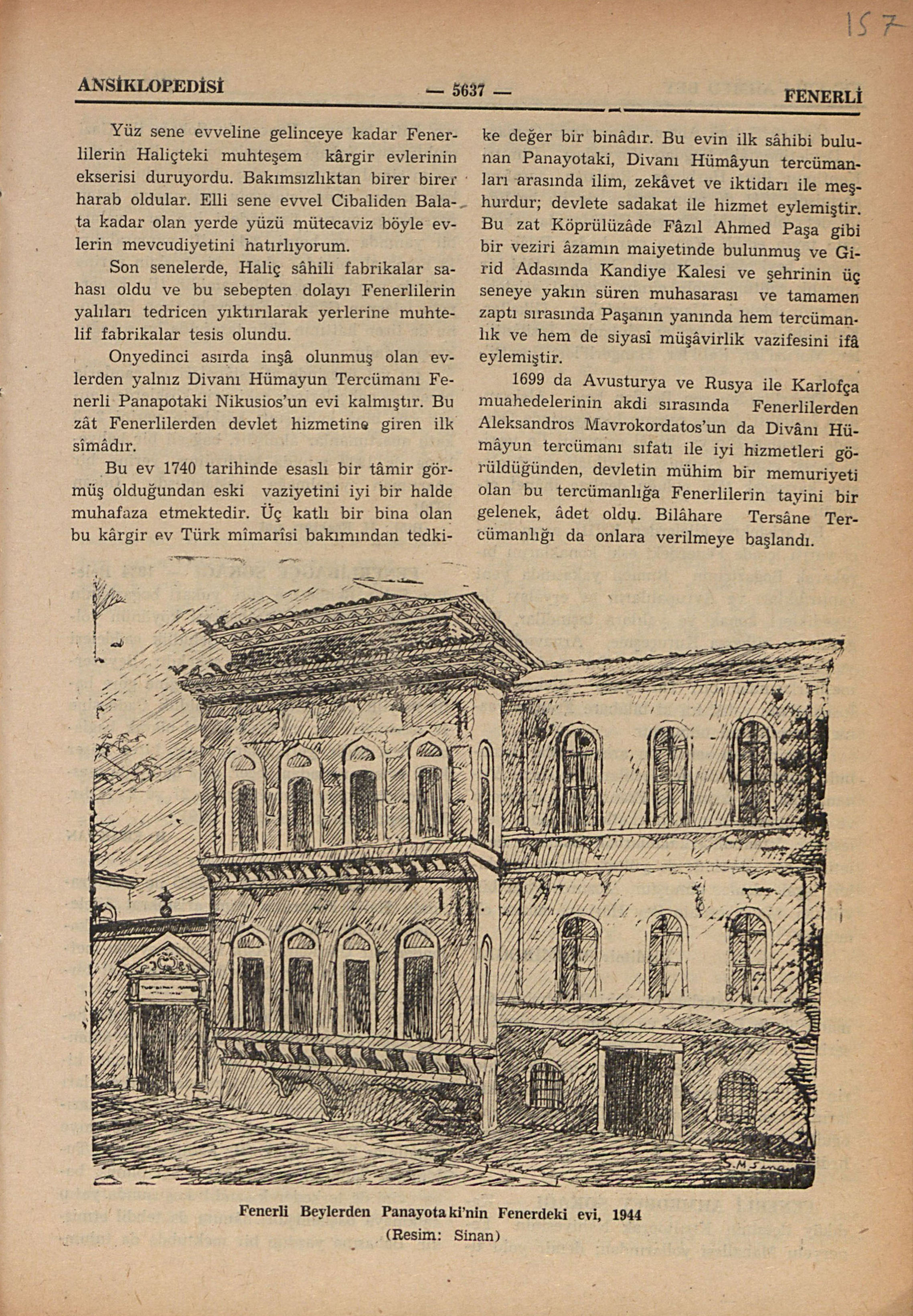 İstanbulun Türkler tarafından fethinden Tanzimât devrine kadar İstanbulda Halicde Fener denilen semtde otura gelmiş İstanbulun rum aristokratlarına verilmiş isimdir. İstanbulun 1453 senesinde Türkler tarafından fetholunduğu zaman, Fatih Sultan Mehmedin derin görüşünü ve olgun siyâsetini bilmeyen Bizansın aristokrat aileleri, Akdeniz adalarına, Moraya, İtalyaya ve Avrupanın diğer yerlerini hicret etmişlerdi. Az zaman sonra şehirde sükûn te’sis edildi ve refah başladı; bu aileler efradından bâzıları gerek ticâret ve gerek, âlicenablığı ve adâleti şâyi olmuş Türk pâdişahına arzı hizmet maksadı ile İstanbula avdet etmişlerdi. Irk ve mezheb ayırmaksızın ilim ve san’at adamlarının Fatih Sultan Mehmed tarafından gördükleri himâye bu gibi zevâtın İstanbula akın etmelerine sebeb olmuşdur. Fatih Sultan Mehmed İstanbuldan hicret etmiş olan şehrin eski ahâlisini tekrar devlet merkezine getirebilmek içindin serbestliğini ilân etti ve kendilerine ortodoks mezhebinden bir Patrik intihap etmelerini emretti ve Katoliklerin en büyük muhalifi olan Yenadios Solarios’u Patrik intihap ettirdi! Bu suretle fetihten evvel büyük tehlikeler geçirmiş ve sönmeye yüz tutmuş olan Ortodoksluğu sureti kat’iyede kurtardı ve kuvvetlendirdi. Bu gün “Şark Ortodoks kilisesi” dediğimiz Fener Patrikhânesi mevcûdiyetini Fatih’e borçludur. Kudretli büyük hükümdar Bizanslılar zamanında Patriklerin haiz oldukları bütün salâhiyetleri Yenadios’a verdi. Fetihten sonra Rum Patrikhânesi bir kaç yer değiştirdikten sonra nihayet 1600 tarihinde Üçüncü Sultan Mehmed zamanında Haliç Fenerinde bugünkü yerinde yerleşti (B.: Fener Rum Ortodoks Patrikhanesi) Rum Aristokrat aileleri de Patrikhânenin etrafında yani Cibaliden Balata kadar olan mahallelerde ikamet etmeye başladılar ve bunların zenginleri, Haliçte muhteşem yalılar yapmışlardı. Bu aristokrat âilelerin efrâdına ecnebiler, “Fenerli” adını vermişlerdi. Fenerliler, çocuklarını, o zamanın en iyi ilim müesseselerine mâlik olan İtalya üniversitelerine gönderip Felsefe, Tıp ve sâir ilimler tahsil ettirirlerdi. Bu çocuklar, Türkçe, Arapça, Farsçayı öğrendikten sonra ecnebi lisanlarını da tahsil ederlerdi. Bundan dolayıdır ki Osmanlı Hükûmeti, ecnebiler ile olan münasebetinde bu Fenerlileri kullanırdı. Divanı Hümâyun ve Donanmayı Hümâyun tercümanları ve bilâhıre Eflâk ve Boğdan beyleri, bu Rumlardan seçilirdi. Yüz sene evveline gelinceye kadar Fenerlilerin Haliçteki muhteşem kârgir evlerinin ekserisi duruyordu. Bakımsızlıktan birer birer harab oldular. Elli sene evvel Cibaliden Balata kadar olan yerde yüzü mütecaviz böyle evlerin mevcudiyetini hatırlıyorum. Son senelerde, Haliç sâhili fabrikalar sahası oldu ve bu sabepten dolayı Fenerlilerin yalıları tedricen yıktırılarak yerlerine muhtelif fabrikalar tesis olundu. Onyedinci asırda inşâ olunmuş olan evlerden yalnız Divanı Hümayun Tercümanı Fenerli Panapotaki Nikusios’un evi kalmıştır. Bu zât Fenerlilerden devlet hizmetine giren ilk sîmâdır. Bu ev 1740 tarihinde esaslı bir tâmir görmüş olduğundan eski vaziyetini iyi bir halde muhafaza etmektedir. Üç katlı bir bina olan bu kârgir ev Türk mîmarîsi bakımından tedkike değer bir binâdır. Bu evin ilk sâhibi bulunan Panayotaki, Divanı Hümâyun tercümanları arasında ilim, zekâvet ve iktidarı ile meşhurdur; devlete sadakat ile hizmet eylemiştir. Bu zat Köprülüzâde Fâzıl Ahmed Paşa gibi bir veziri âzamın maiyetinde bulunmuş ve Girid Adasında Kandiye Kalesi ve şehrinin üç seneye yakın süren muhasarası ve tamamen zaptı sırasında Paşanınyanında hem tercümanlık hem de siyasî müşâvirlik vazifesini ifâ eylemiştir. 1699 da Avusturya ve Rusya ile Karlofça muahedelerinin akdi sırasında Fenerlilerden Aleksandros Mavrokordatosun da Divânı Hümâyun tercümanı sıfatı ile iyi hizmetleri görüldüğünden, devletin mühim bir memuriyeti olan bu tercümanlığa Fenerlilerin tayini bir gelenek, âdet oldu. Bilâhare Tersâne Tercümanlığı da onlara verilmeye başlandı. Üçüncü Sultan Ahmed zamanında Osmanlı Devletine tâbi Boğdan Voyvodası Dimitri Kantimur Prut Harbinde Rusların tarafına geçmişdi; 1711 de onun yerine de bu beyliğe ilk defa olarak bir Fenerli, Nikola Mavrokordato tayin edildi. Yarım asır kadar Eflâk ve Boğdan beyi olarak Osmanlı Devletine tâbi bir prenslik tahtına sâhib olmuş Fenerli aristokrat rum âileleri Mavrokordato’lar, Gika’lar, Kalimahi’ler, Garagea’lar, Sutzu’lar, İpsilânti’ler, Moruzi’ler, Ralli’ler, Hangerli’ler, Rosetti’lerdir. Fenerlilerden sonra Boğdan beyi Aleksandros İpsilânti, Rusya çarının himâyesinde Odesada kurulan Eterya ihtilâl cemiyeti ile teşrîki mesâi etmiş, Yunanistan istiklâli mücâdelesine karışarak tâbi olduğu devlete ihânet etmiştir. Bu aristokrat âilelerden XVIII. asrın ikinci yarısı içinde Fenerdeki eski konaklarını bırakarak Boğaziçinin Rumeli yakasında yeni yaptırdıkları ve Avrupalıların ev eşyâları ile döşedikleri konak ve yalılara taşındılar, Boğazda da bilhassa Kuruçeşme, Arnavudköyü ve Tarabyayı tercih ettiler. Bu yalıların en meşhurlarından biri Tarabyada Aleksandros İpsilânti’nin yalısı idi ki bilâhare Fransız yazlık sefarethânesi olmuşdur. Tanzimattan sonra bu aristokratlar İstanbluu, Türkiyeyi de terk ettiler, bir kısmı Yunanistana, bir kısmı da Fransaya, İngiltereye ve Avrupanın sâir memleketlerine gidip yerleştiler. İstanbulda kalanlardan Osmanlı devletinin son devrinde de yüksek devlet mevkileri işgal edenler olmuştur, Mozuros Paşa büyükelçi, Mavrikordato Bey Hâriciye nâzırı olmuşdur. Vladimir MIRMIROĞLU Aşağıdaki satırları M. Zeki Pakalın’ın “Osmanlı Tarih Deyimleri ve Terimleri” isimli eserinden alıyoruz: “Eflâk