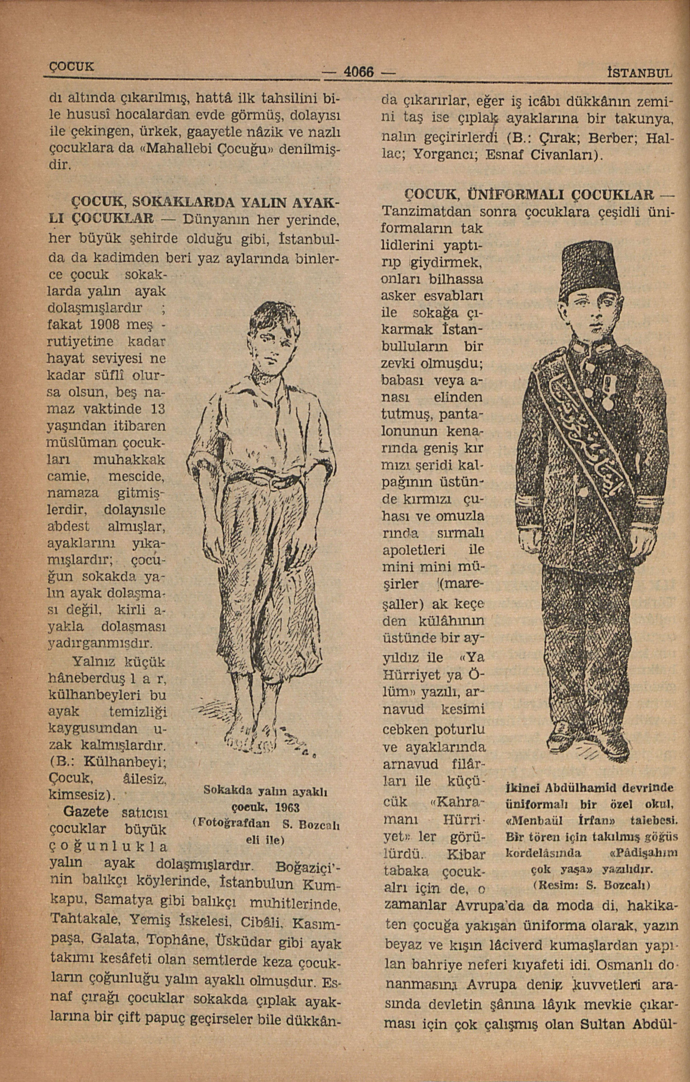 Ayak takımından âilelerin evde olduğu kadar sokakda büyümüş, hemen sabilik çağından iş hayatında tavlanmış, yırtık, pervâsız, küfür bilir, terbiyeden yana yoksul çocuklara “Mahalle Çocuğu”; sokağa nâdir olarak lala kanadı altında çıkarılmış, hattâ ilk tahsilini bile hususî hocalardan evde görmüş, dolayısı ile çekingen, ürkek, gaayetle nâzik ve nazlı çocuklara da “Mahallebi Çocuğu” denilmişdir.