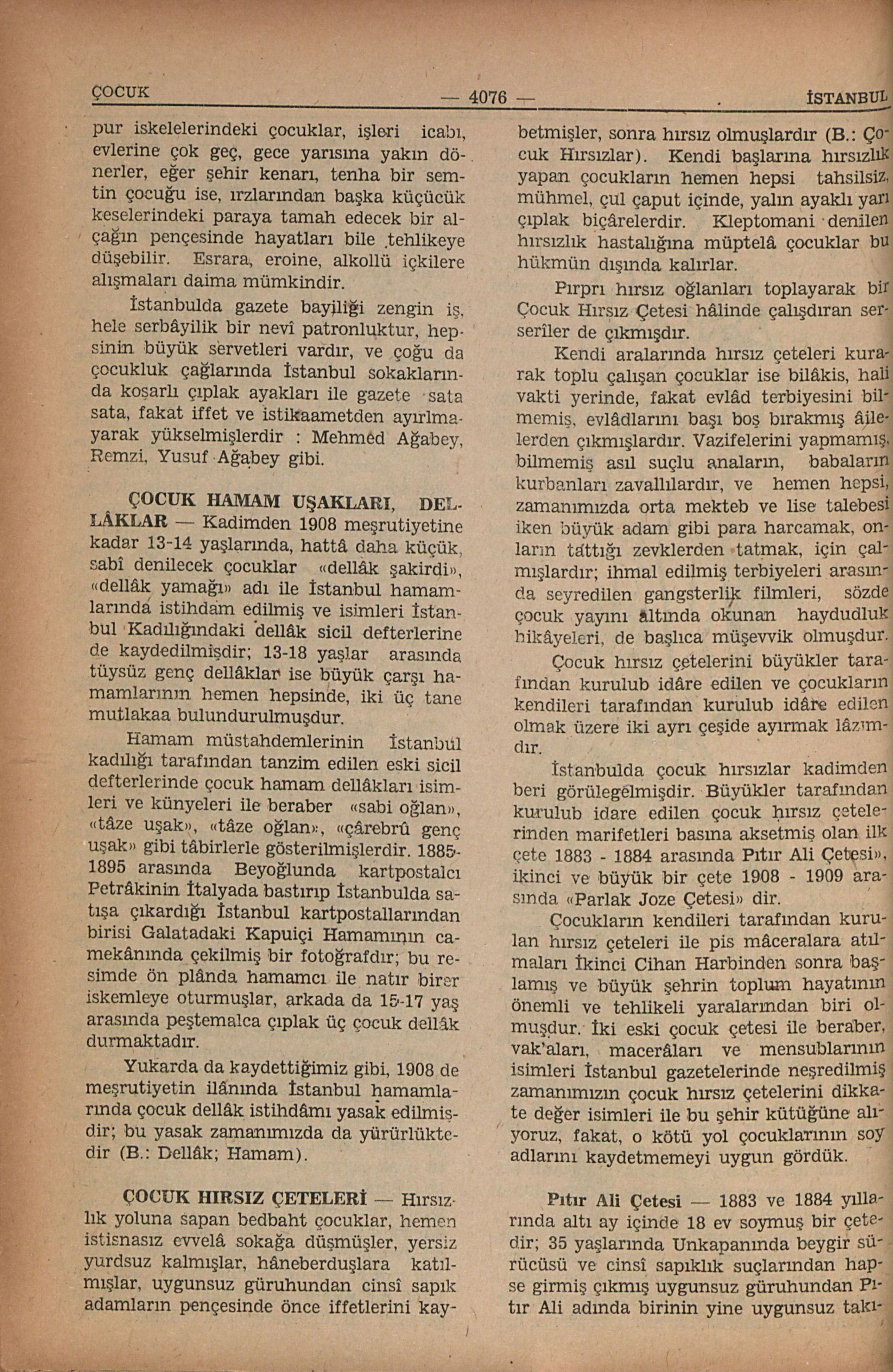 Yukarda da kaydettiğimiz gibi, 1908 de meşrutiyetin ilânında İstanbul hamamlarında çocuk dellâk istihdâmı yasak edilmişdir; bu yasak zamanımızda da yürürlüktedir (B.: Dellâk; Hamam).