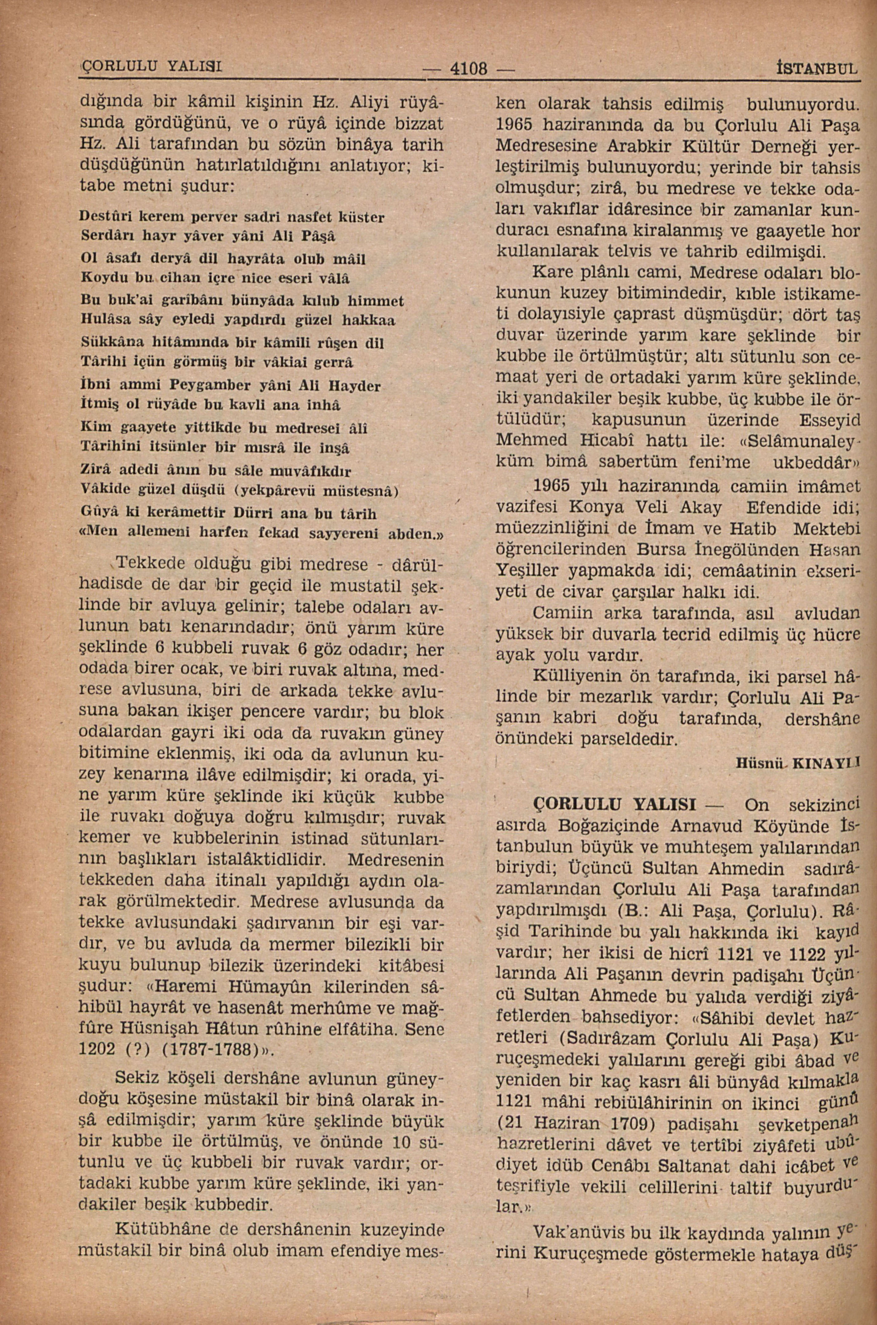 ÇORLULU ALİ PAŞA CAMİİ, MEDRESESİ, KÜTÜBHÂNESİ