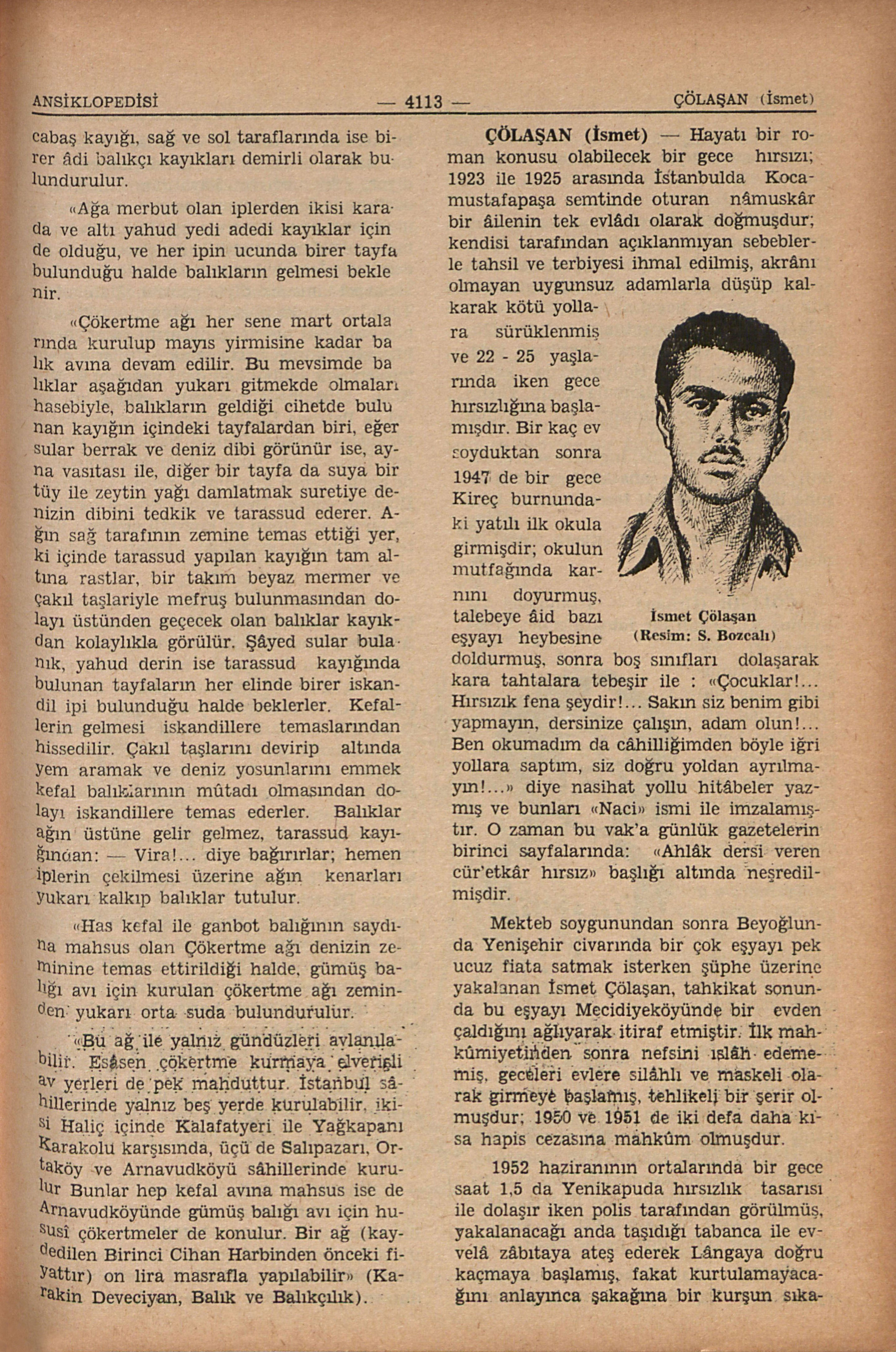 “Çökertme ağı her sene mart ortalarında kurulup mayıs yirmisine kadar balık avına devam edilir. Bu mevsimde balıklar aşağıdan yukarı gitmekde olmaları hasebiyle, balıkların geldiği cihetde bulunan kayığın içindeki tayfalardan biri, eğer sular berrak ve deniz dibi görünür ise, ayna vasıtası ile, diğer bir tayfa da suya bir tüy ile zeytin yağı damlatmak suretiye denizin dibini tedkik ve tarassud ederer. Ağın sağ tarafının zemine temas ettiği yer, ki içinde tarassud yapılan kayığın tam altına rastlar, bir takım beyaz mermer ve çakıl taşlariyle mefruş bulunmasından dolayı üstünden geçecek olan balıklar kayıktan kolaylıkla görülür. Şâyed sular bulanık, yahud derin ise tarassud kayığında bulunan tayfaların her elinde birer iskandil ipi bulunduğu halde beklerler. Kefallerin gelmesi iskandillere temaslarından hissedilir. Çakıl taşlarını devirip altında yem aramak ve deniz yosunlarını emmek kefal balıklarının mûtadı olmasından dolayı iskandillere temas ederler. Balıklar ağın üstüne gelir gelmez, tarassud kayığından: — Vira!... diye bağırırlar; hemen iplerin çekilmesi üzerine ağın kenarları yukarı kalkıp balıklar tutulur.