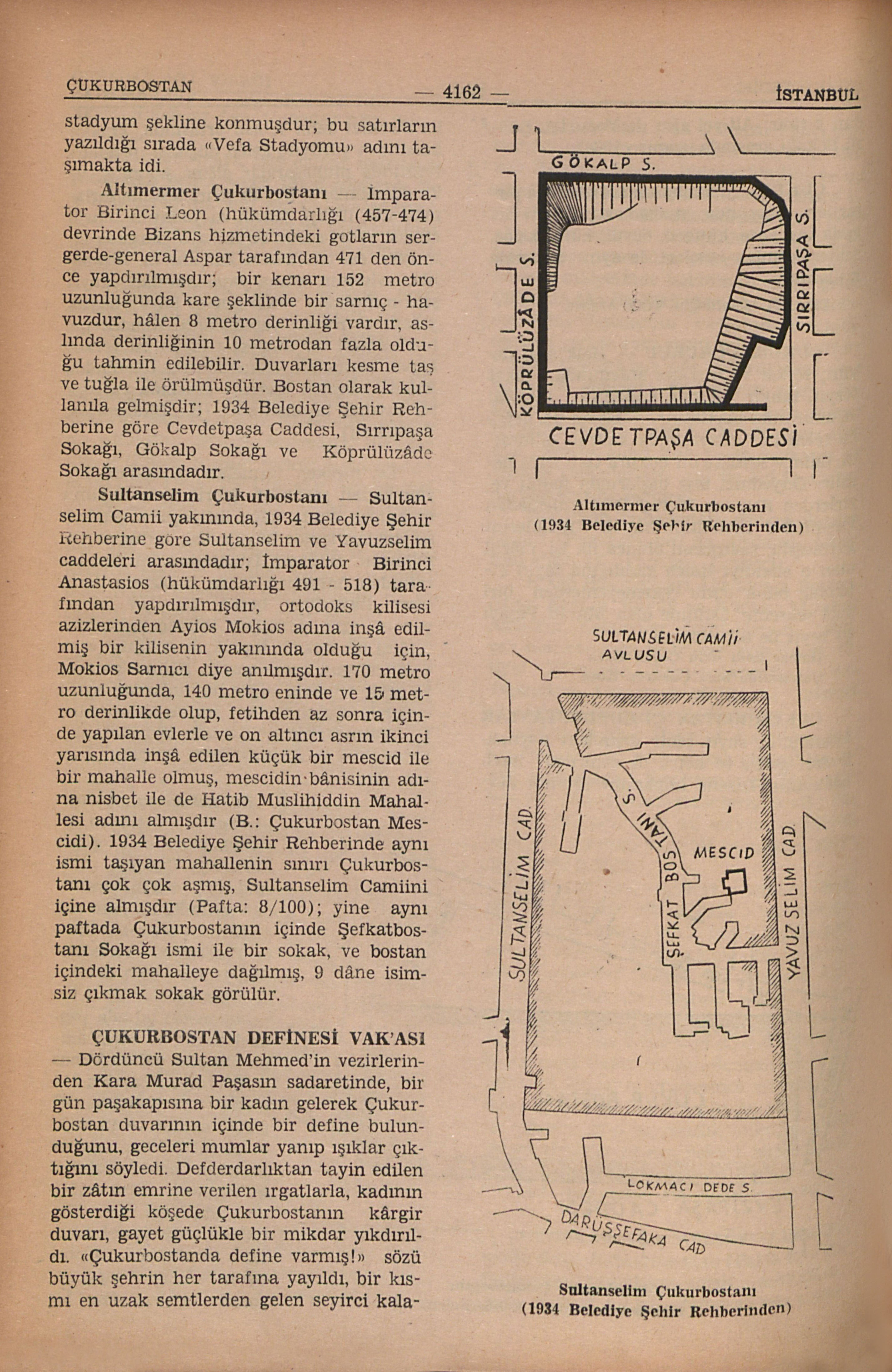 Dördüncü Sultan Mehmed’in vezirlerinden Kara Murad Paşasın sadaretinde, bir gün paşakapısına bir kadın gelerek Çukurbostan duvarının içinde bir define bulunduğunu, geceleri mumlar yanıp ışıklar çıktığını söyledi. Defterdarlıktan tayin edilen bir zâtın emrine verilen ırgatlarla, kadının gösterdiği köşede Çukurbostanın kârgir duvarı, gayet güçlükle bir miktar yıkdırıldı. “Çuburbostanda define varmış!” sözü büyük şehrin her tarafına yayıldı, bir kısmı en uzak semtlerden gelen seyirci kalabalığı, bir kaç gün meraklı ve heyecanlı anlar yaşadı; ırgatların her kazma darbesinde bir altın şakırtısı beklendi. Fakat bütün ümidler boşa çıktı. Halk bu sefer Murad Paşayı dile düşürdü: “Koca vezir aklı kısa bir avrat sözüne uyup da define arattı”, “Meğer bu kadın vaktiyle Mevlevî Koca Mehmed paşaya da gitmiş ve ayni defineyi haber vermiş; fakat Mehmed Paşa: — Var çıkar senin olsun! diye başından savmış imiş” dediler.