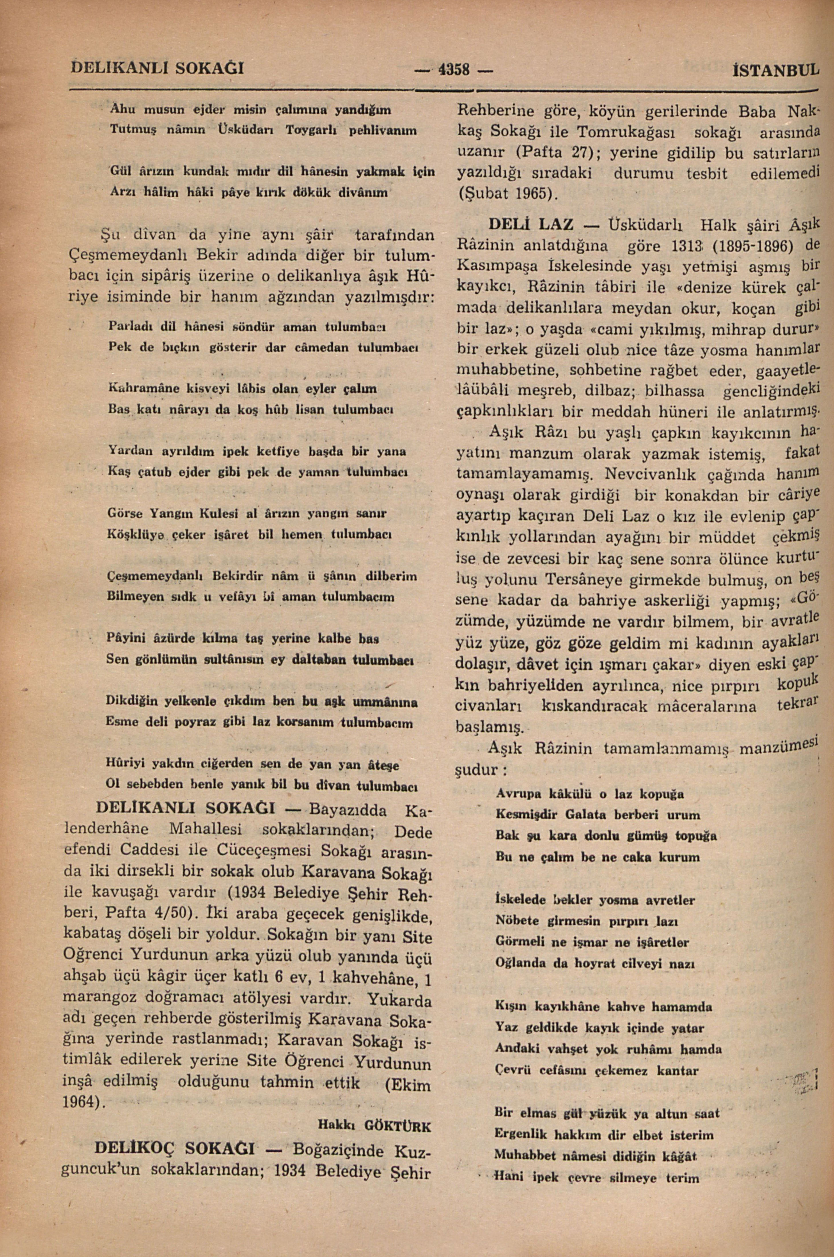 Asırlar boyunca devam etmiş bu hây ü hûy âleminde, hezel ve hiciv yollu bâzı yazılar müstesnâ, bütün şâirler dâîmâ afif ve nezih kalmışlardır. Hulâsa İstanbulun geçmiş asırlardaki günlük hayatında delikanlı önemli yer alır. Güzellikleri, kiyâfetleri tasvir edilmiş, mâcerâları, hayat hikâyeleri manzum veya mensur kalem diline verilmiş, isimleri ile, lakabları ile unvanları ile, işleri ile bilinen delikanlılar büyük şehrin tarih kütüğüne geçmişlerdir.