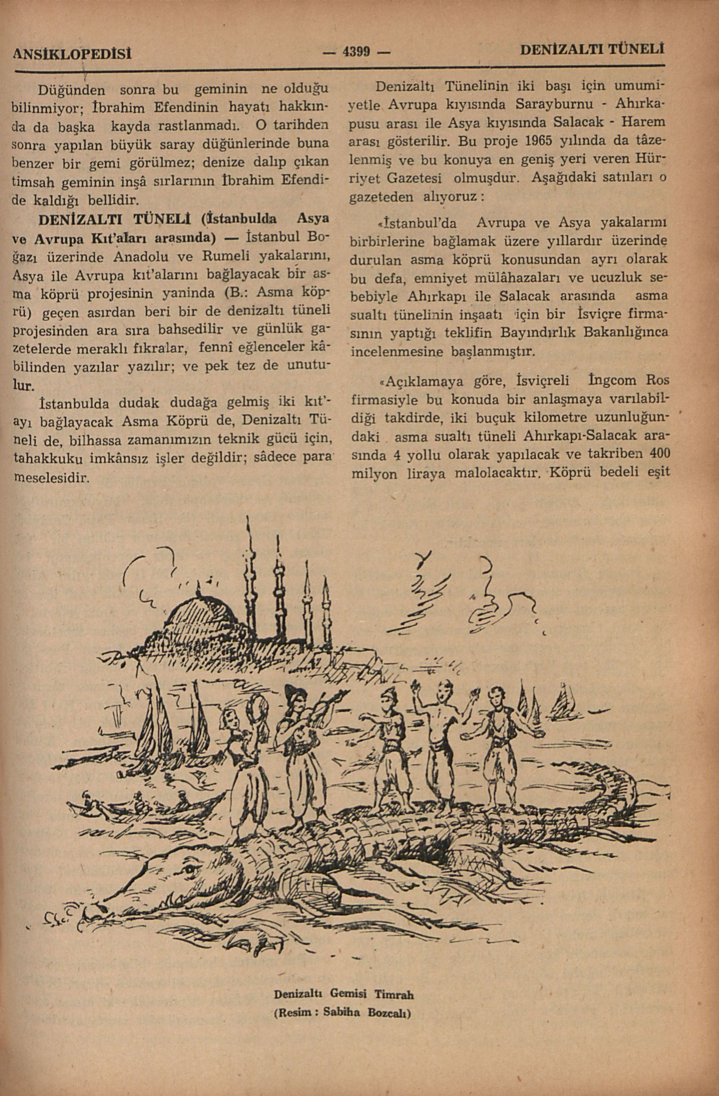 “İstanbul’da Avrupa ve Asya yakalarını birbirlerine bağlamak üzere yıllardır üzerinde durulan asma köprü konusundan ayrı olarak bu defa, emniyet mülâhazaları ve ucuzluk sebebiyle Ahırkapı ile Salacak arasında asma sualtı tünelinin inşaatı için bir İsviçre firmasının yaptığı teklifin Bayındırlık Bakanlığınca incelenmesine başlanmıştır.
