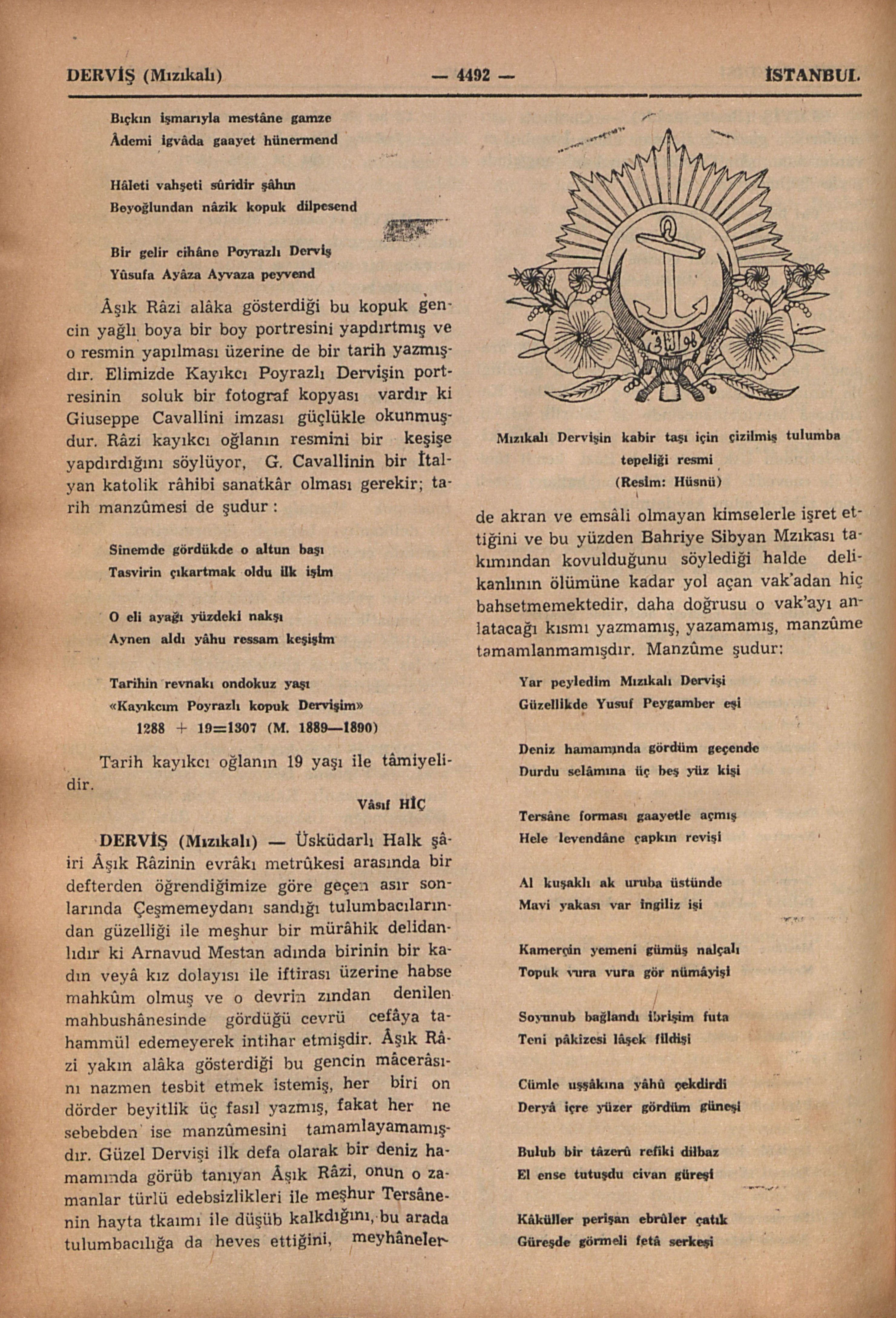 “Kayıkcım Poyrazlı kopuk Dervişim”