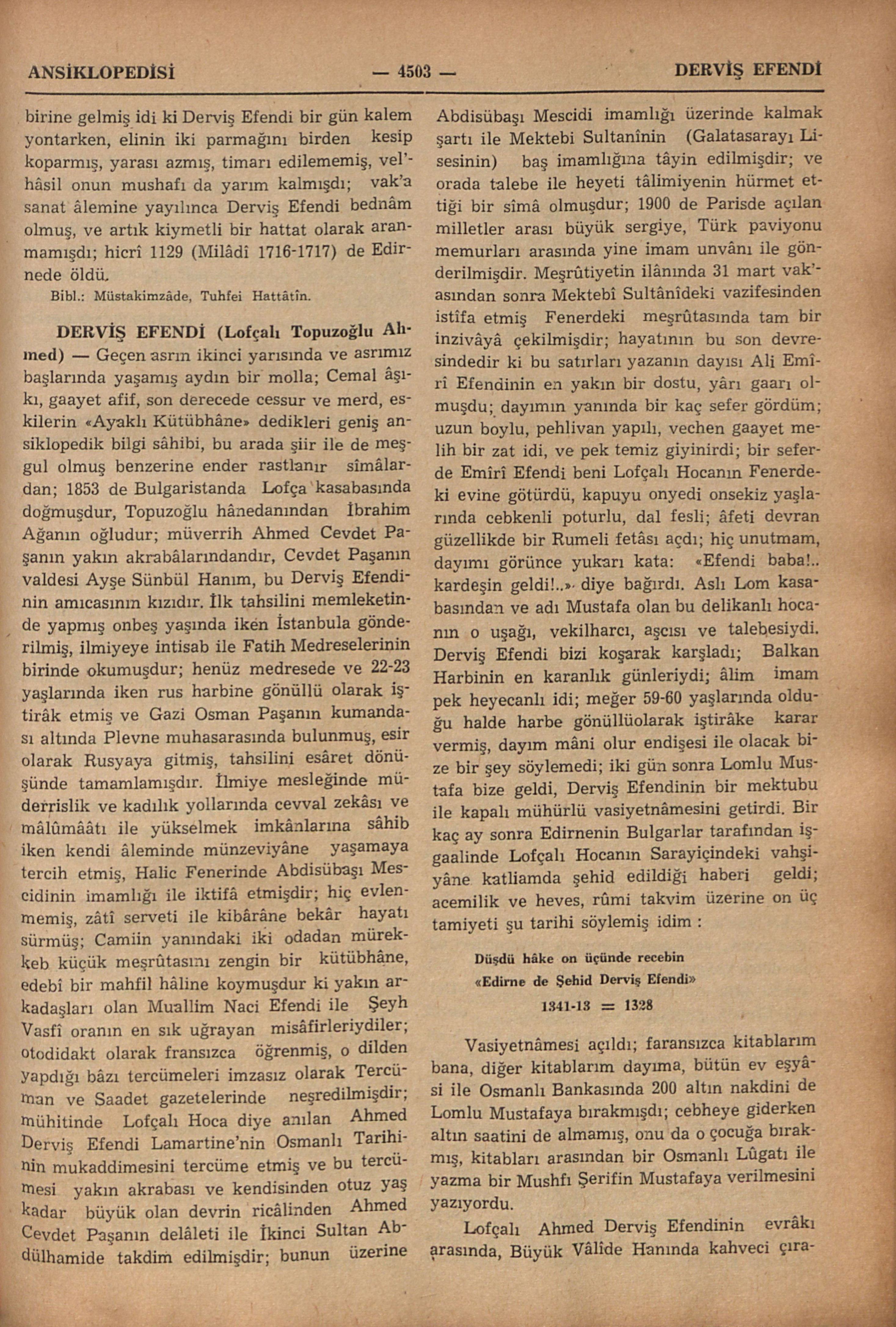 Bibl.: Müstakimzâde, Tuhfei Hattâtîn.