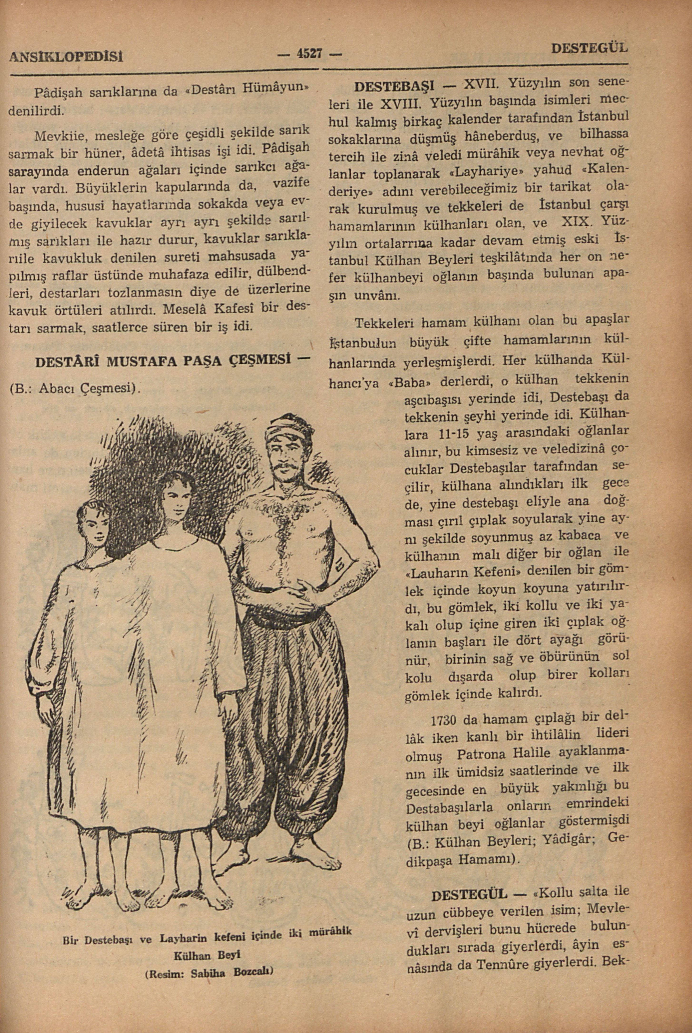 1730 da hamam çıplağı bir dellâk iken kanlı bir ihtilâlin lideri olmuş Patrona Halile ayaklanmanın ilk ümidsiz saatlerinde ve ilk gecesinde en büyük yakınlığı bu Destabaşılarla onların emrindeki külhan beyi oğlanlar göstermişdi (B.: Külhan Beyleri; Yâdigâr; Gedikpaşa Hamamı).