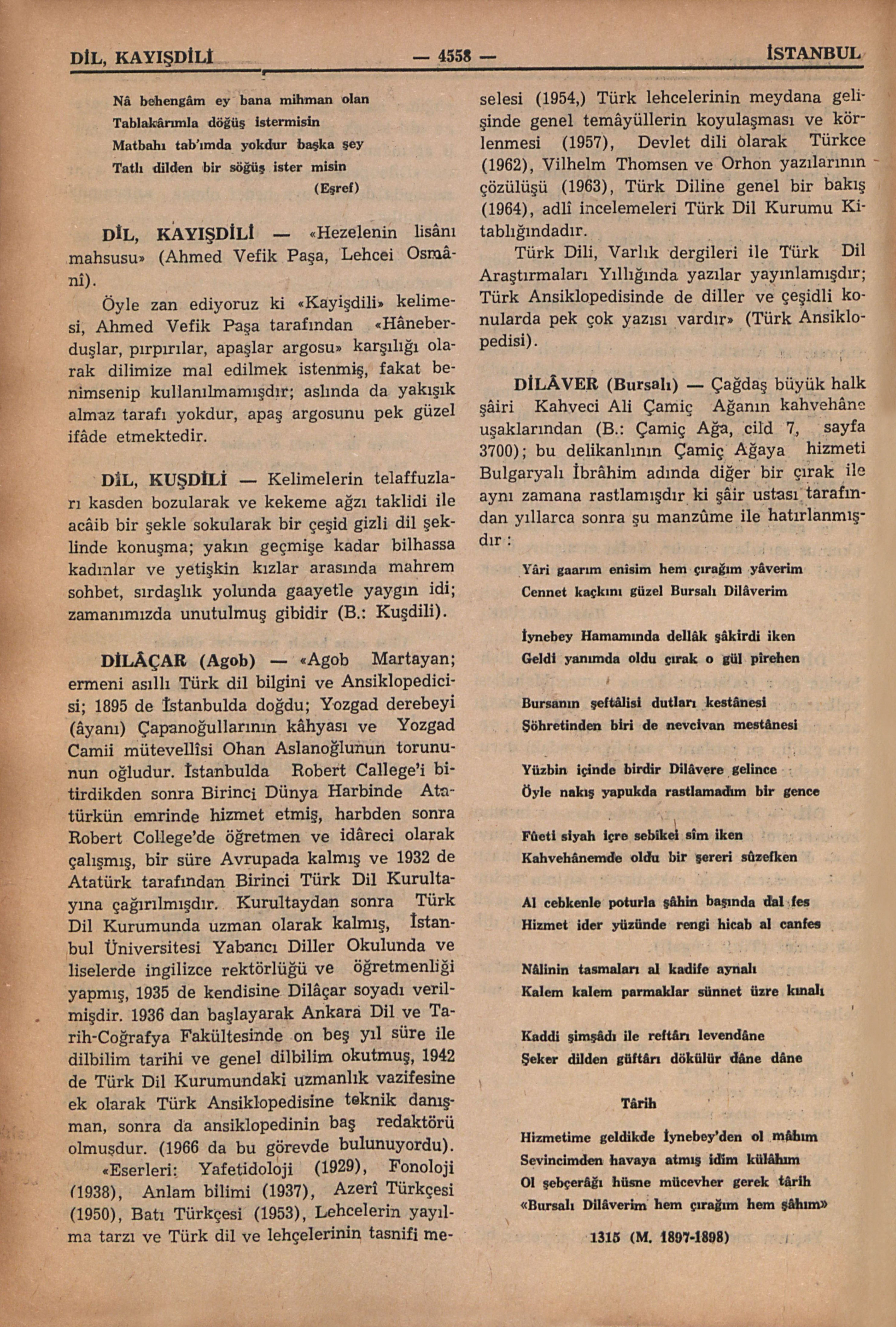 İstanbul ağzında darbı mesel ve deyimlerle zengin kelimedir; “dil üzerine darbı meseller: