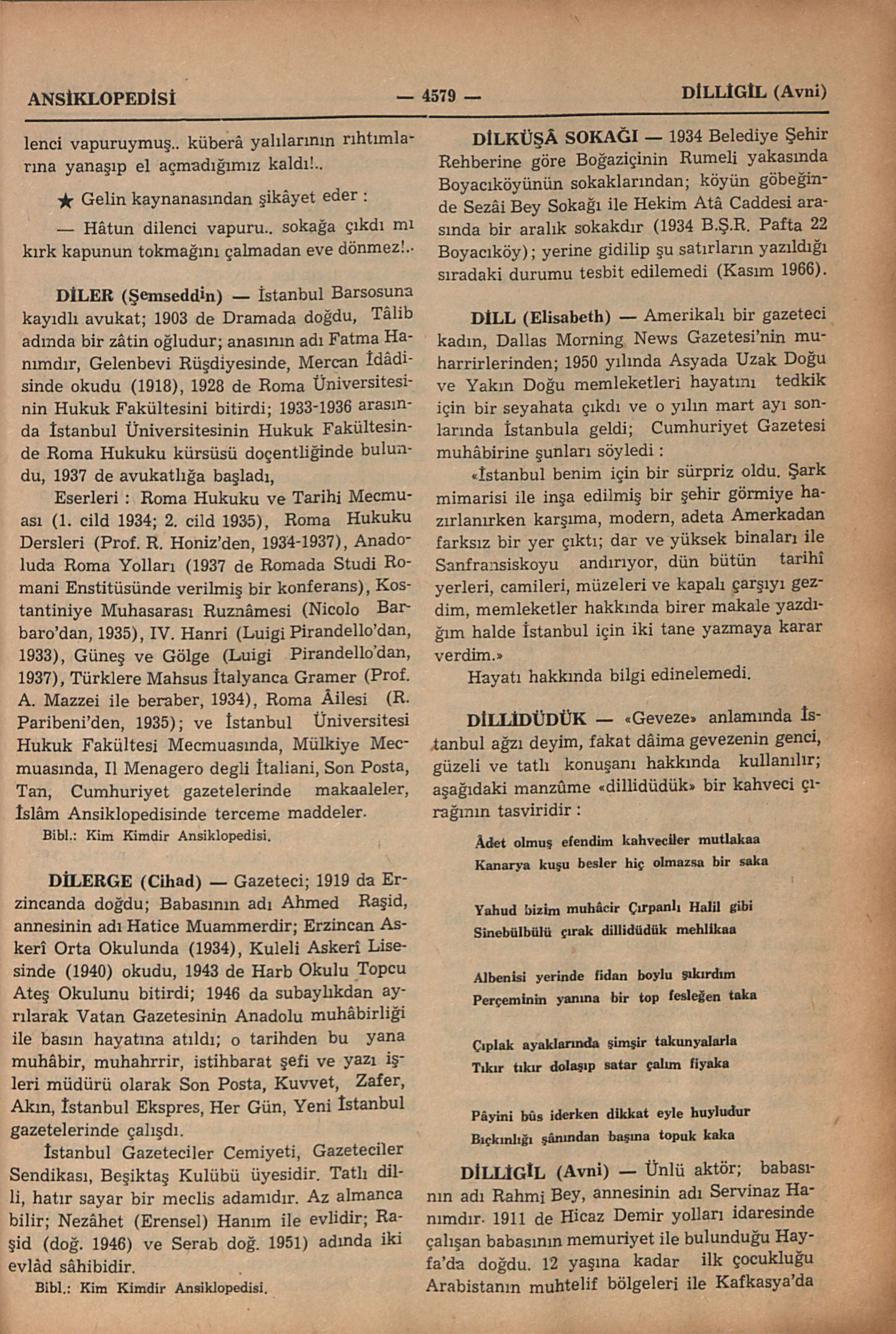 “Geveze” anlamında İstanbul ağzı deyim, fakat dâima gevezenin genci, güzeli ve tatlı konuşanı hakkında kullanılır; aşağıdaki manzûme “dillidüdük” bir kahveci çırağının tasviridir: