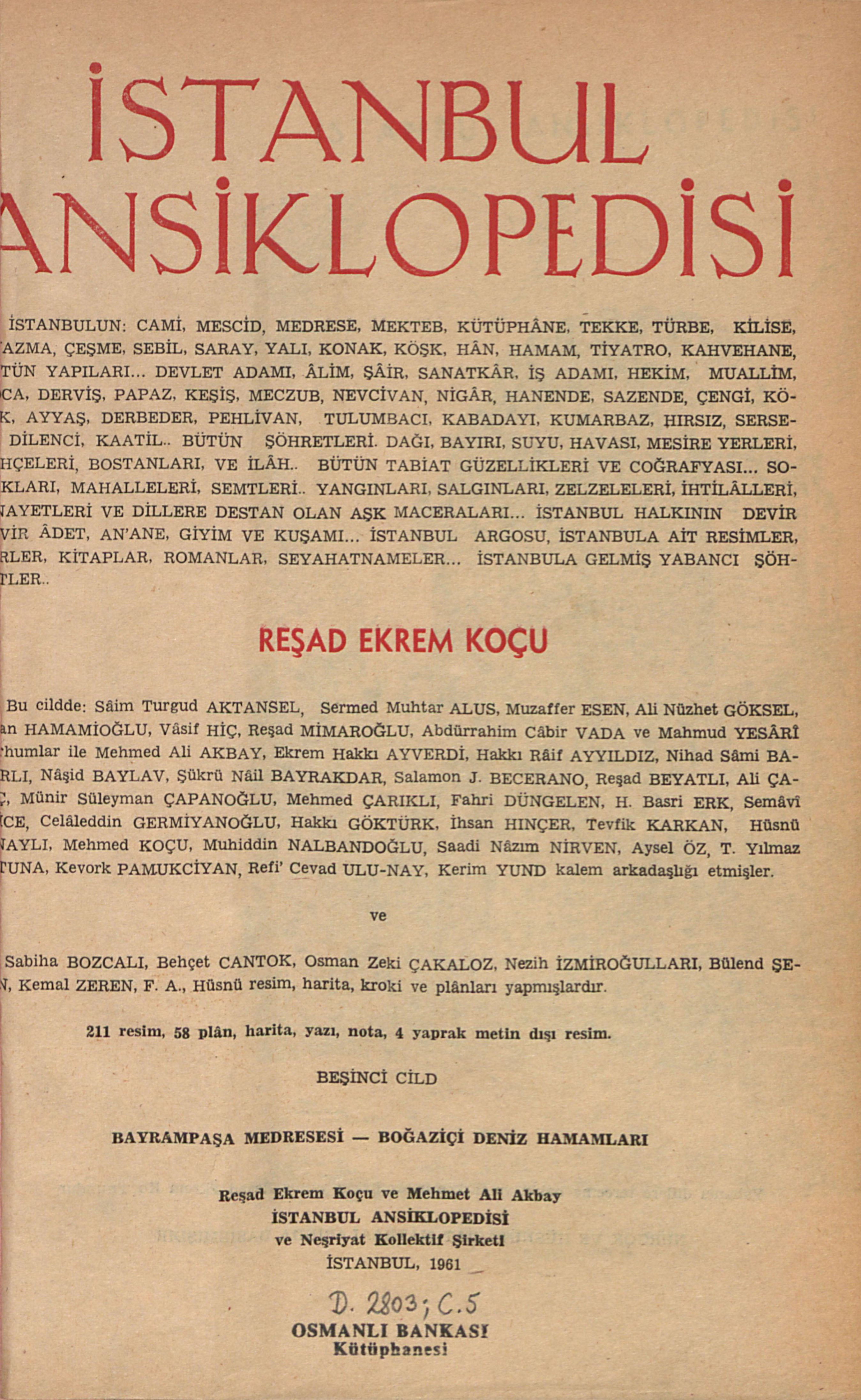 Reşad Ekrem Koçu, Mehmet Ali Akbay, İstanbul Ansiklopedisi ve Neşriyat Kollektif Şirketi - Reşad Ekrem Koçu, Mehmet Ali Akbay, Istanbul Encyclopedia and Publication Collective Company