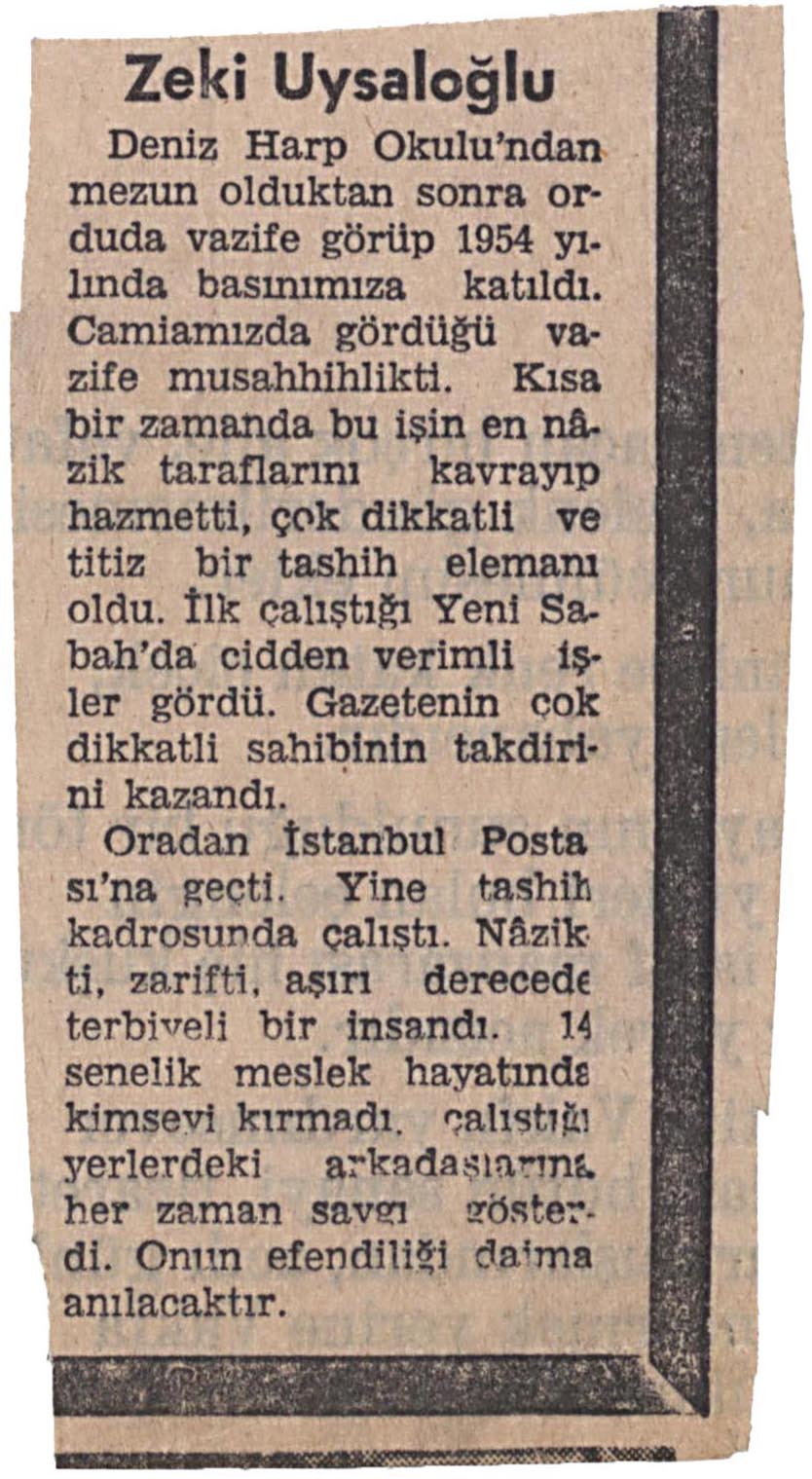 Clipping about Uysaloğlu (Zeki)