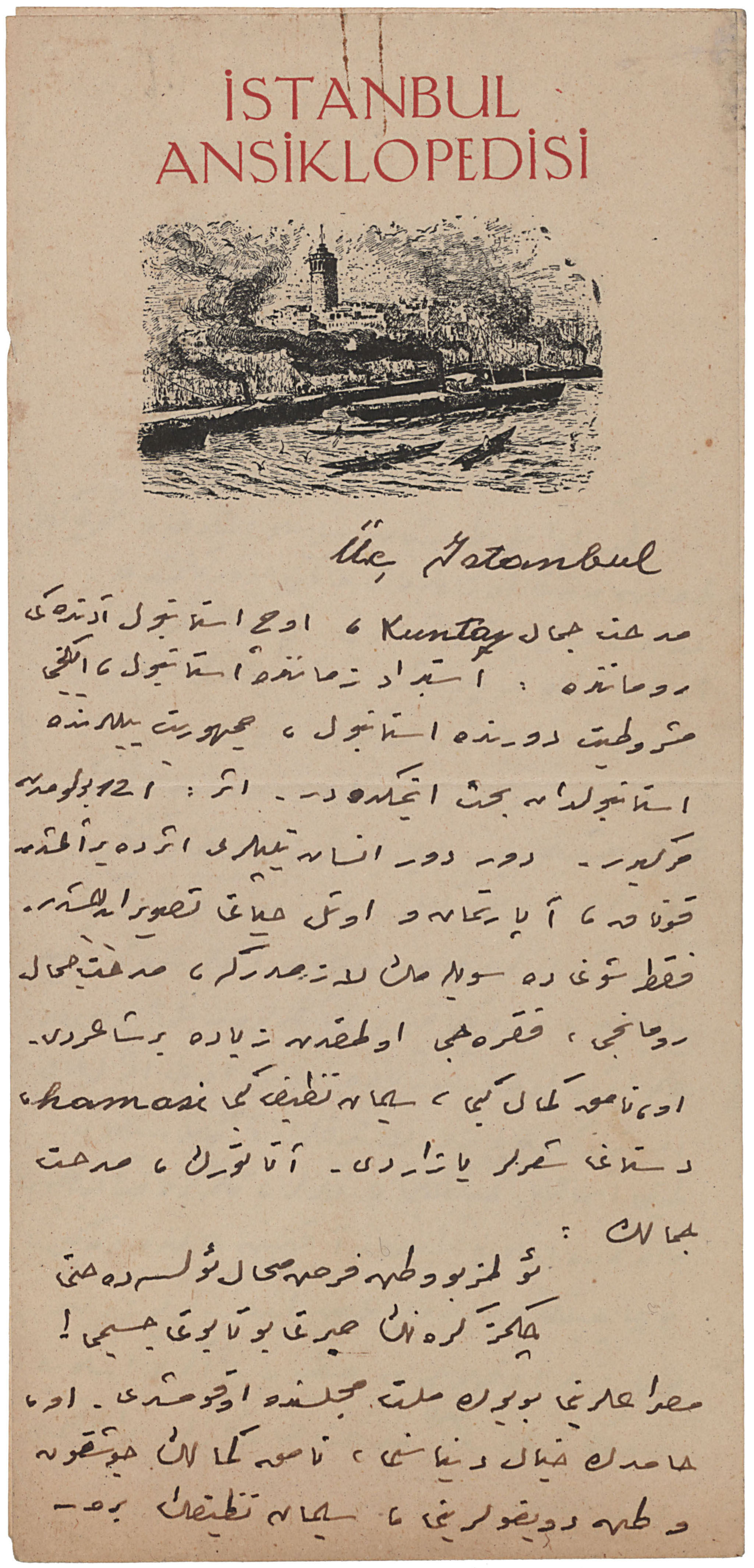 Ink and pencil on paper with Istanbul Encyclopedia letterhead.