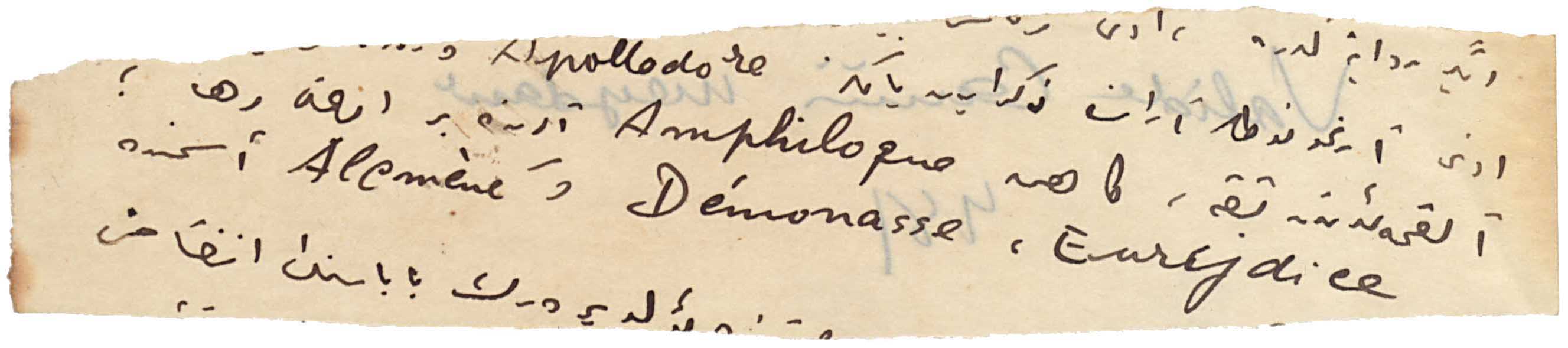 Pencil on paper. There is a note written with ink on the back of the document.