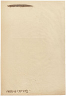 Ink on paper. Article title written with ink is crossed out on the back of the paper.
