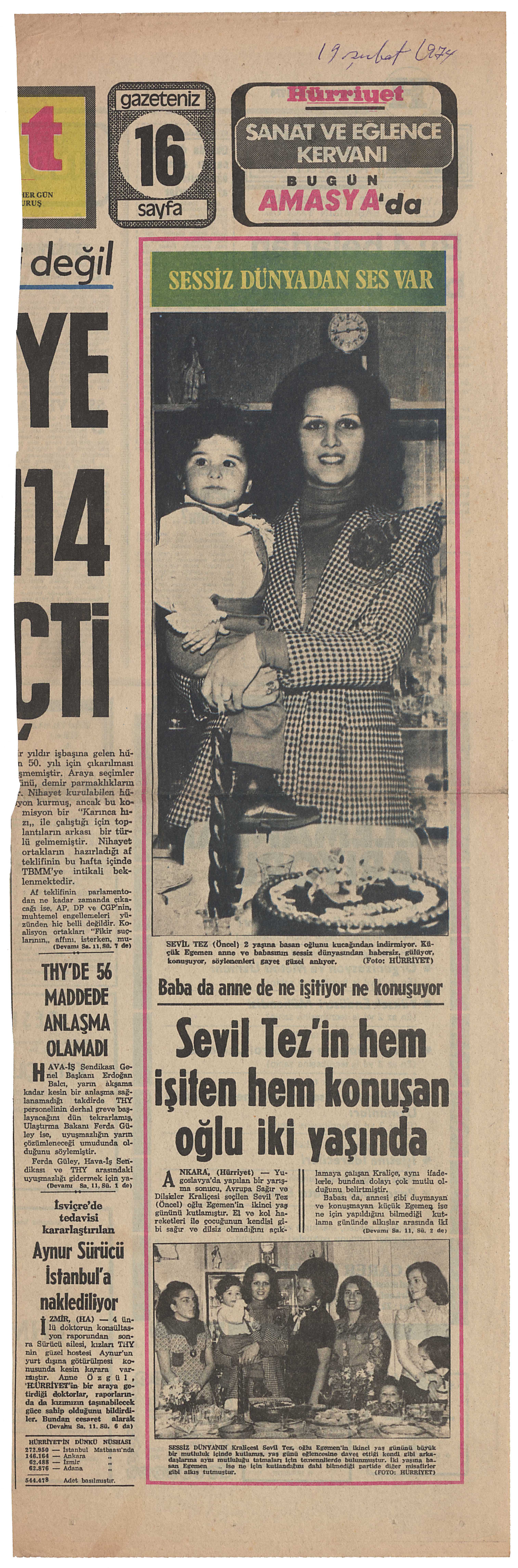"Sevil Tez'in hem işiten hem konuşan oğlu iki yaşında" başlıklı kupür