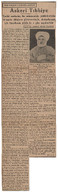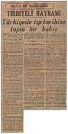 Resimli Uyanış Dergisi, 5 Kânunu evvel 1930, cild 69-5, no. 179-108, s. 63-4; Resimli Uyanış Dergisi, 5 Kânunu evvel 1930, cild 69-5, no. 179-108, s. 52; Resimli Uyanış Dergisi, 5 Kânunu evvel 1930, cild 69-5, no. 179-108, kapak sayfası; Aylık Ansiklopedi, Mart 1945, no. 11, s. 351-3; Kurun, 14 Mart 1935, s. 7; Hürriyet, 23 Haziran 1955