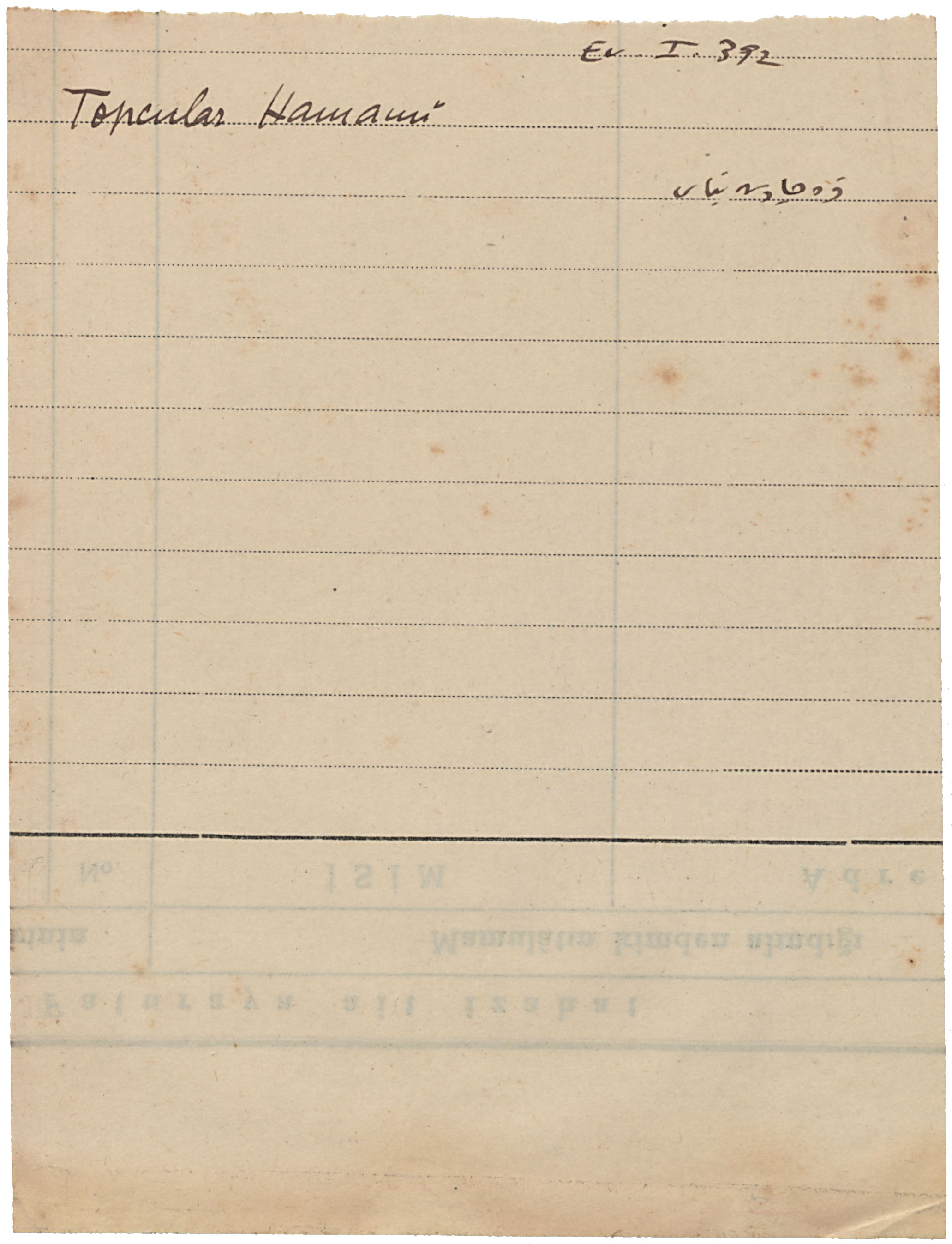 Note titled "Topcular Hamami"