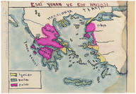 Kâğıt üzerine mürekkep. Belgenin arkasında renkli kurşun kalem ve mürekkeple çizilmiş harita parçası vardır.