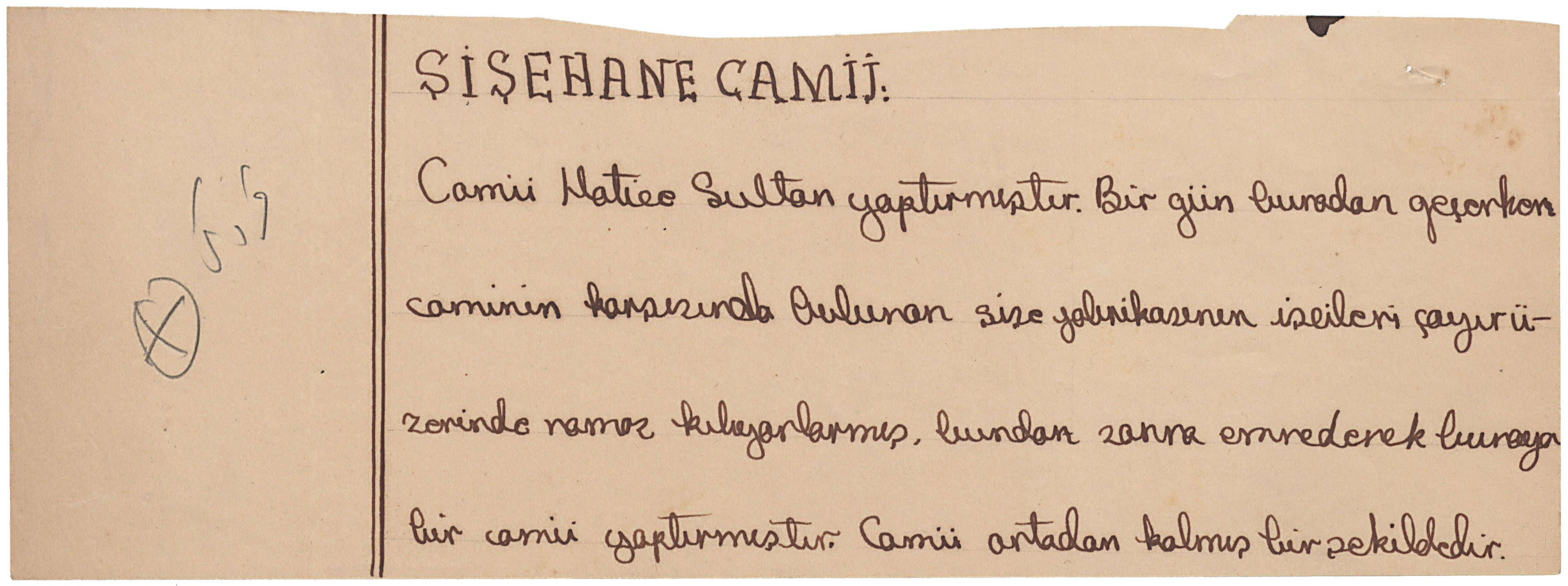 Note titled "Şişehane Camii" (Şişehane Mosque)
