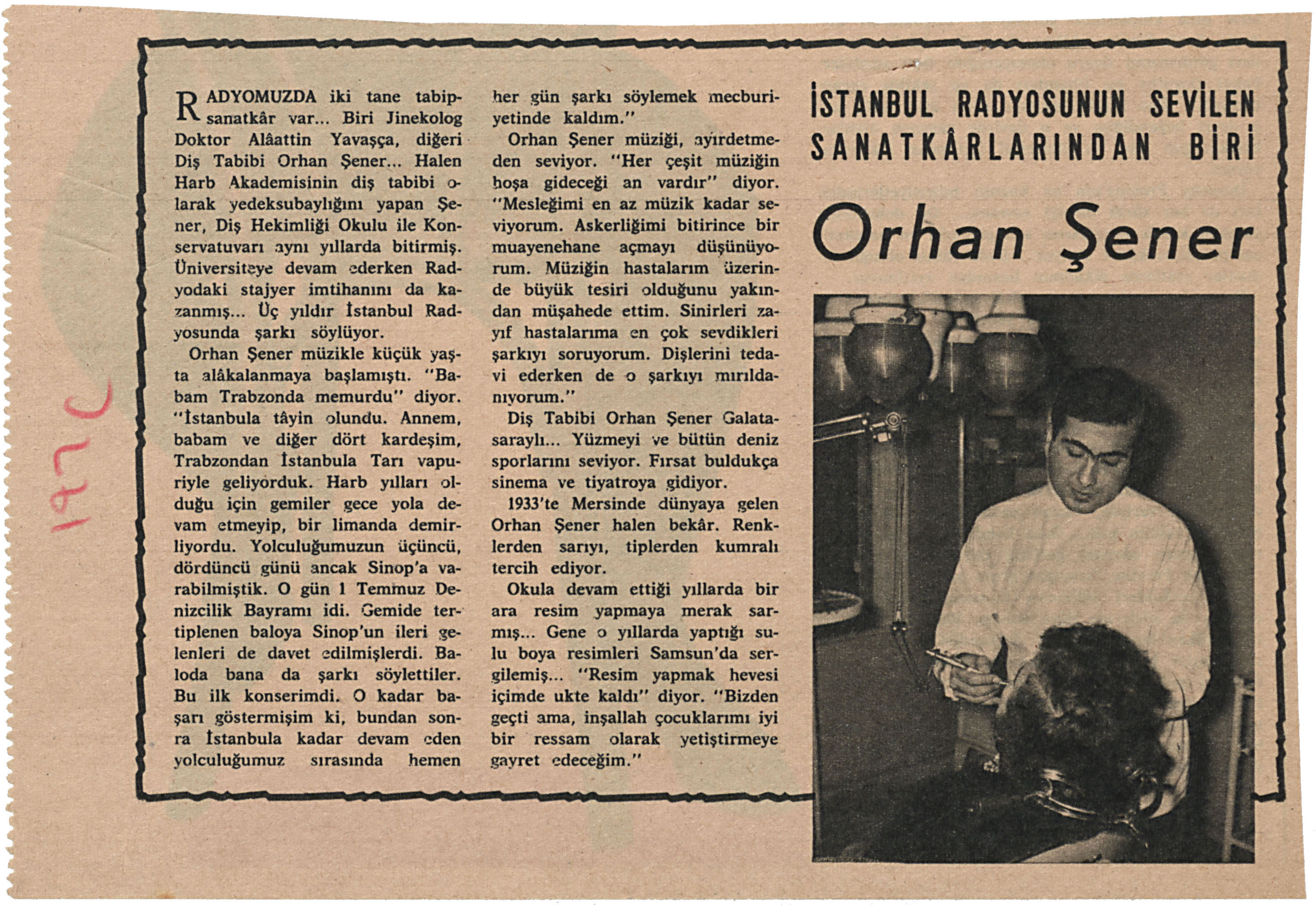 "İstanbul Radyosunun Sevilen Sanatkârlarından Biri Orhan Şener" başlıklı kupür