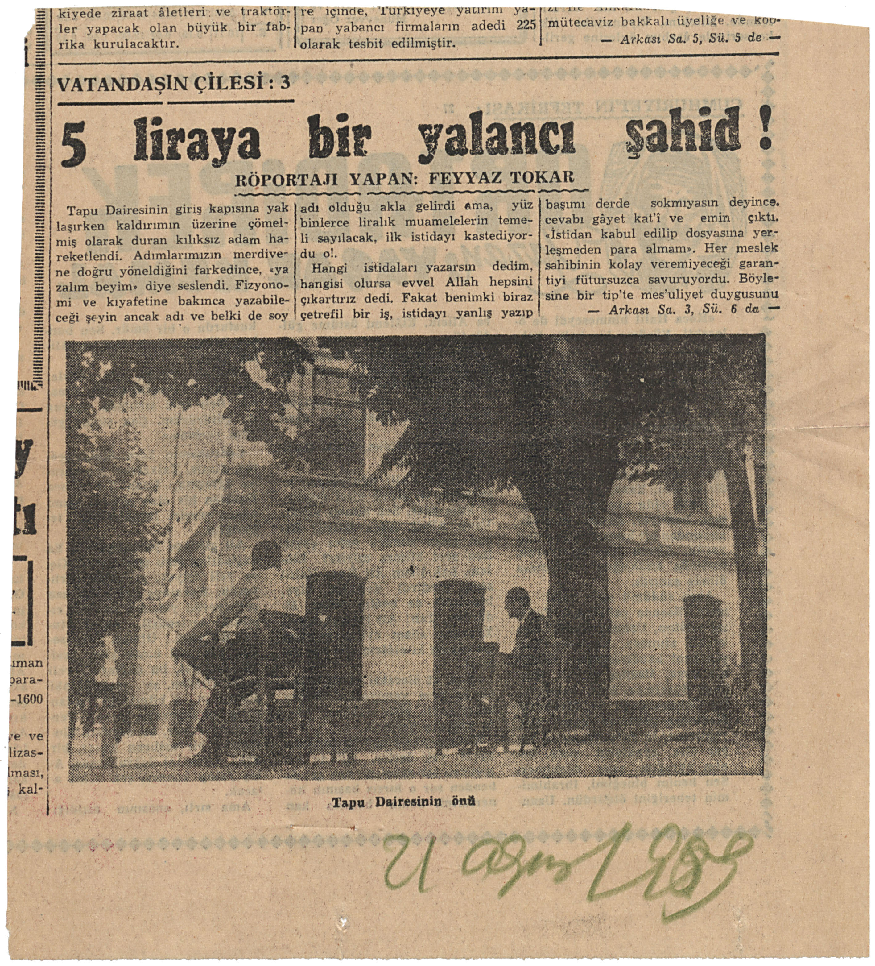 "Vatandaşın Çilesi: 3.5 liraya bir yalancı şahid!" başlıklı kupür