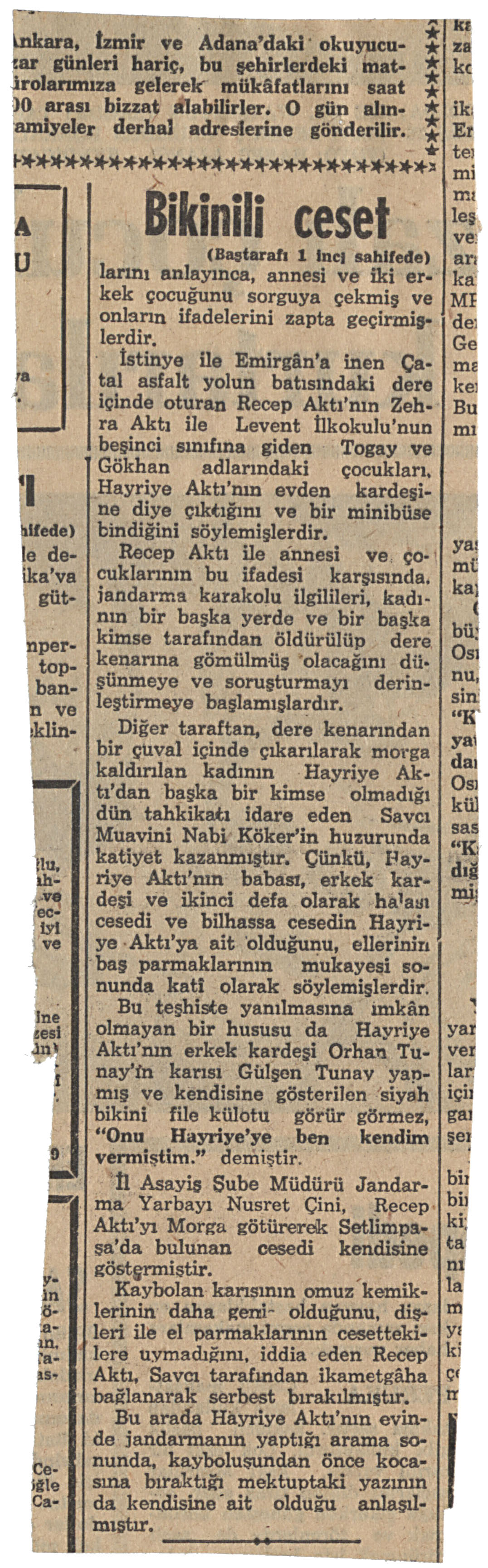 Selimpaşa Köyü cinayeti, Selimpaşa Village murder, Suç, Crime, Cinayet, Murder, Silivri, Hürriyet (Gazete), Hürriyet (Newspaper), Recep Aktı, James Bond Recep, Hayriye Aktı, Zehra Aktı, Gökay Aktı, Togay Aktı, Levent İlkokulu, Levent Primary School, İstinye, Emirgan, Nabi Köker, Savcı Yardımcısı Köker, Deputy Prosecuting Attorney Köker, Boyacıköy, Ahmet Tunay, Orhan Tunay, Gülşen Tunay, Yarbay Nusret Çini, Lieutenant Colonel Nusret Çini