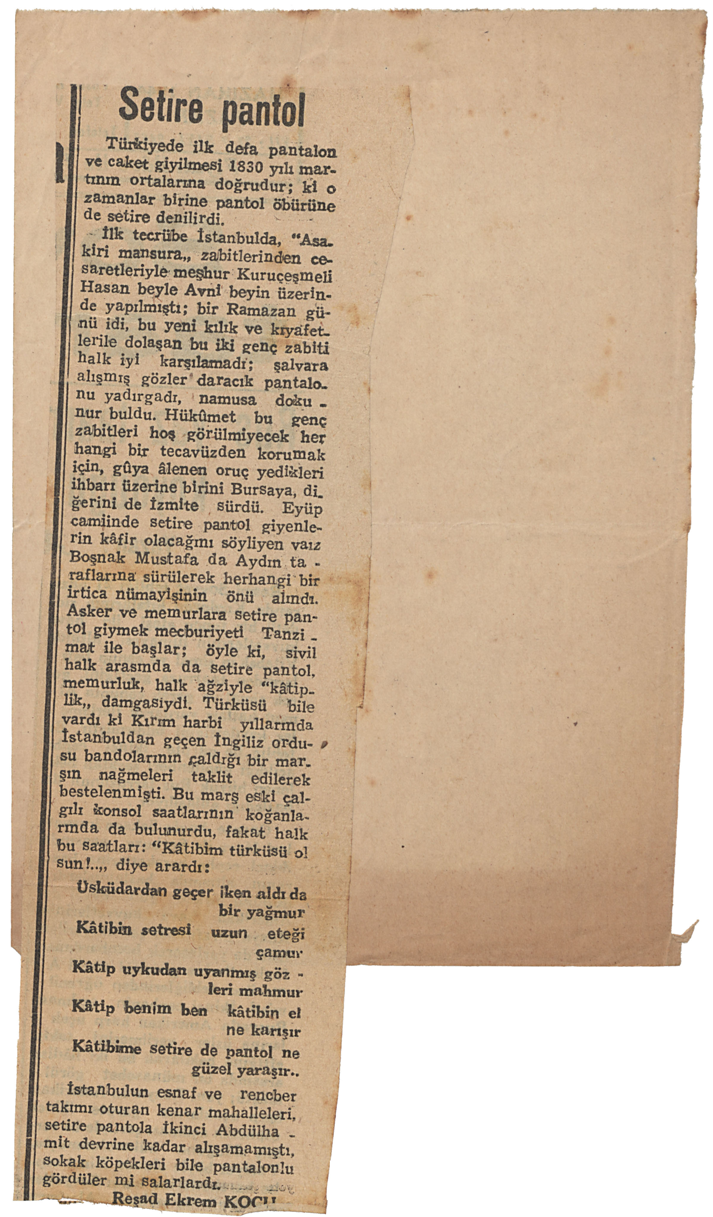 "Setire pantol" başlıklı kupür