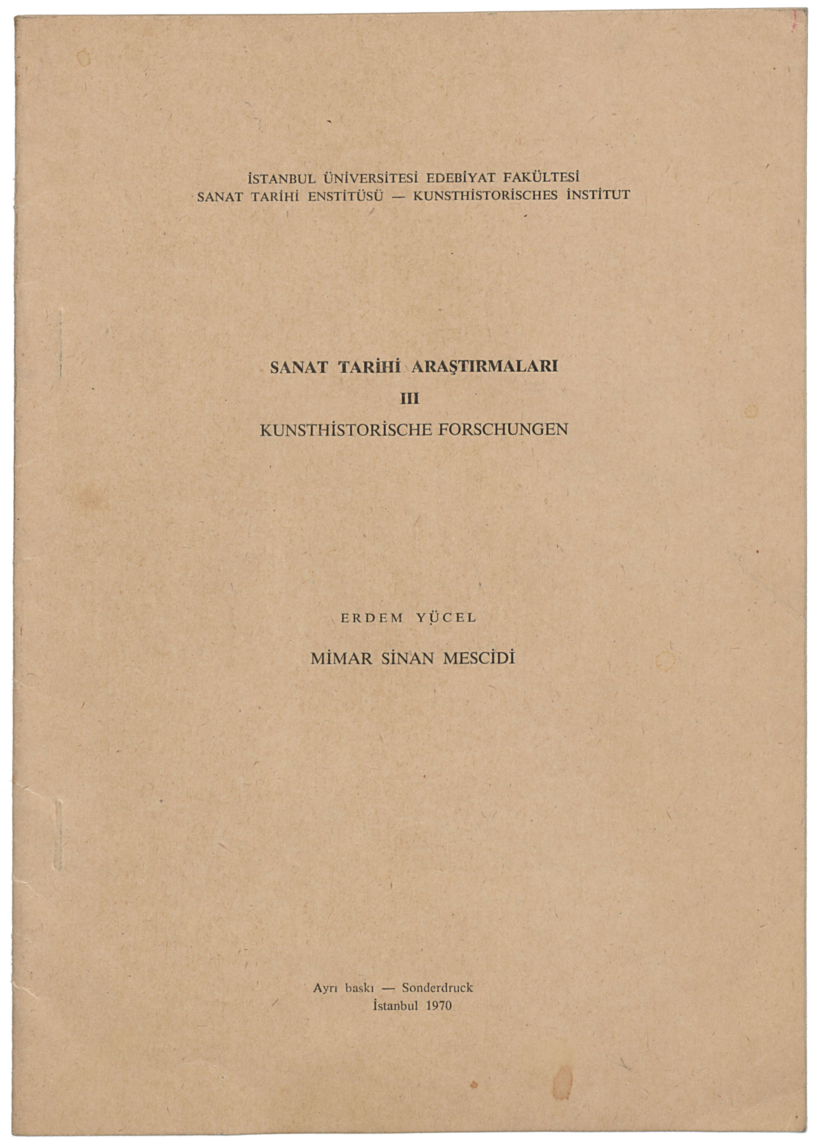 Erdem Yücel, "Mimar Sinan Mescidi," Sanat Tarihi Araştırmaları [=Kunsthistorische Forschungen, III, Offprint, (Istanbul, 1970), pp. 49-58