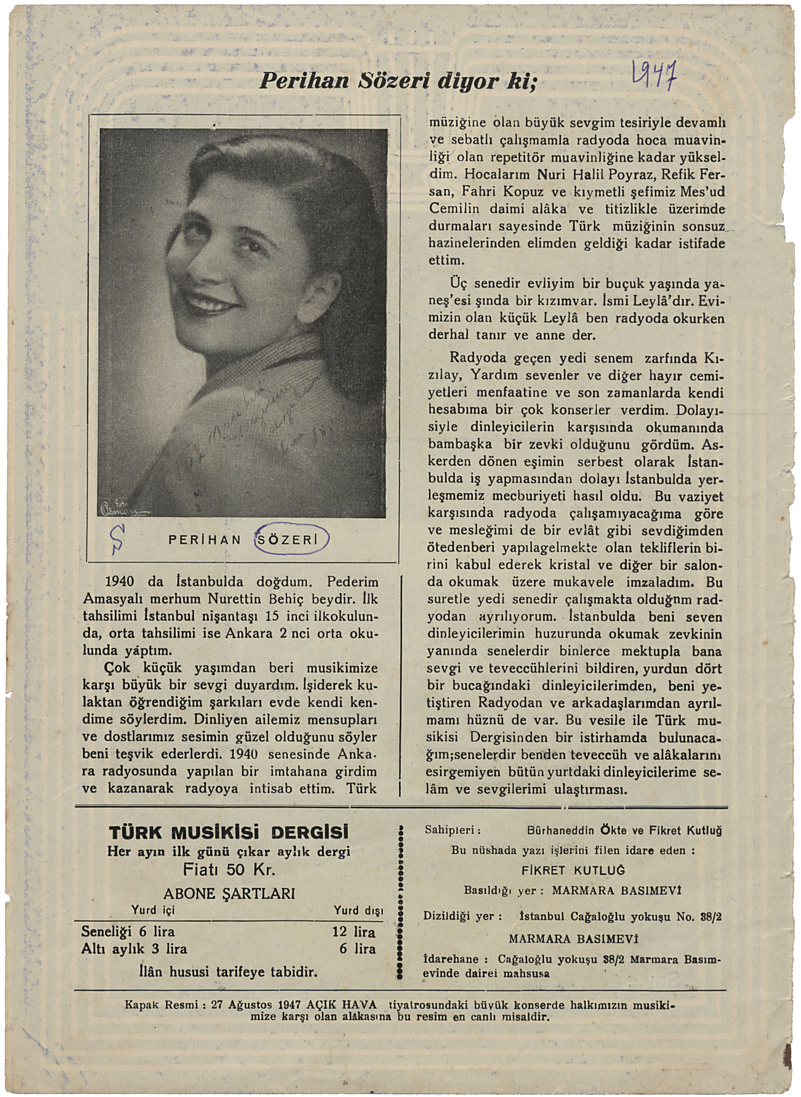 Türk Musikisi Dergisi, 1947, no. 1, s. 1