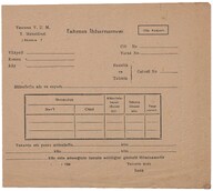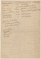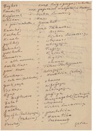 Daktiloyla kâğıt üzerine yazılmış listeler ve kurşun kalemle kâğıt üzerine el yazısı metinler.