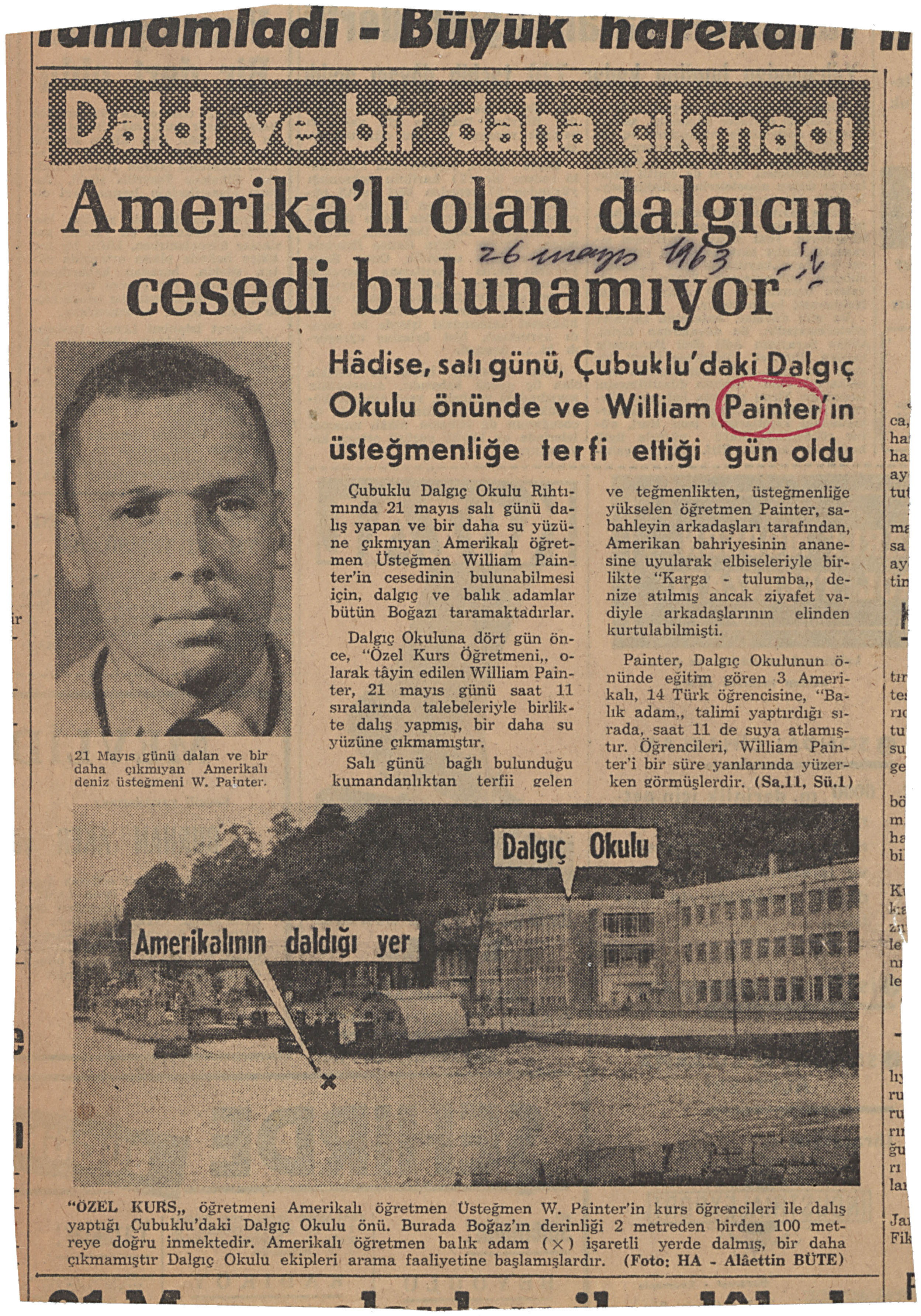 "Daldı ve bir daha çıkmadı. Amerika'lı olan dalgıcın cesedi bulunamıyor" başlıklı kupür