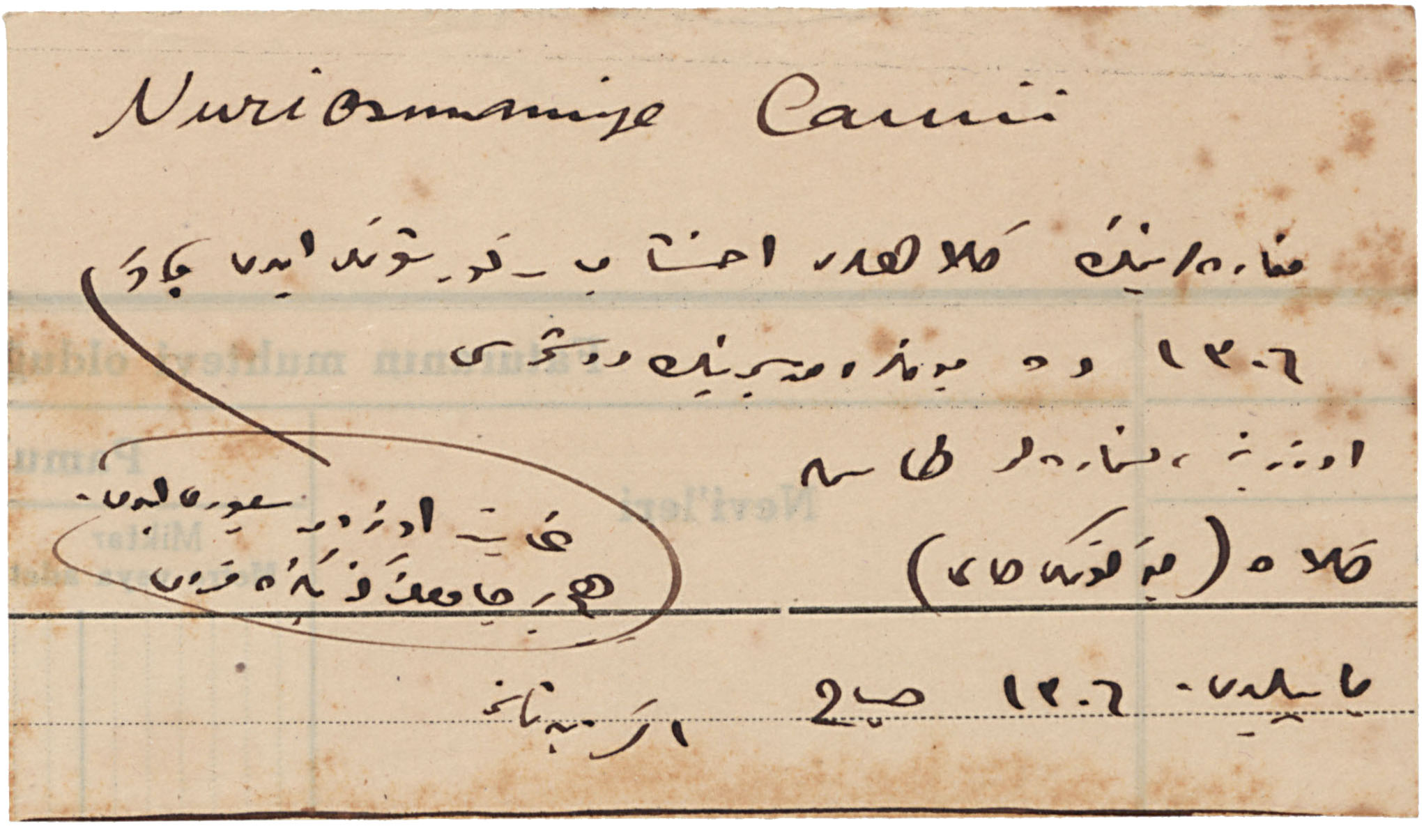 Note titled "Nuriosmaniye Camii" (Nuriosmaniye Mosque)