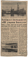 Typewritten note titled "İstinye Tersanesi" (İstinye Dockyard)