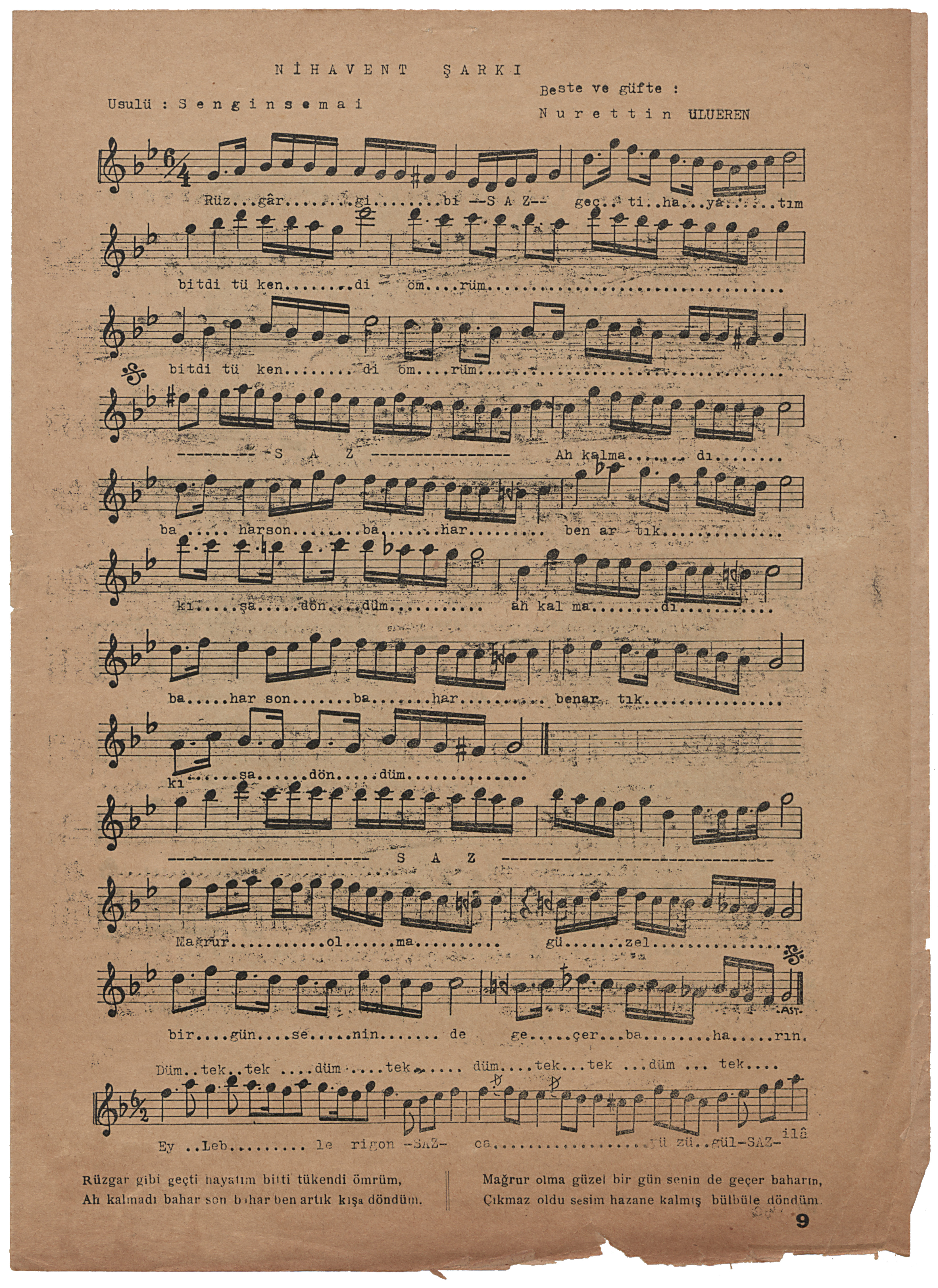 Sadi Işılay'ın biyografisi ve fotoğrafı ile notalar içeren sayfa