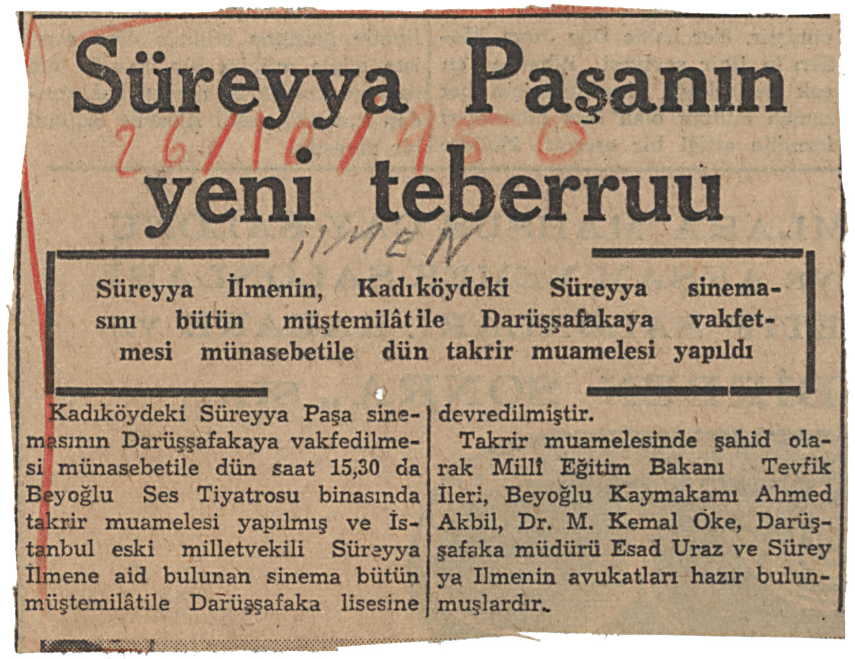 İlmen (Süreyya), Süreyya İlmen, İlhan (Süreyya), Süreyya İlmen Paşa, Süreyya İlmen Pasha, Süreyya Paşa Sineması, Süreyya Pasha Cinema