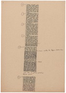 Kâğıt üzerine daktilo. Belgeye kupürler yapıştırılmış, düzeltmeler tükenmez kalemle yazılmıştır.