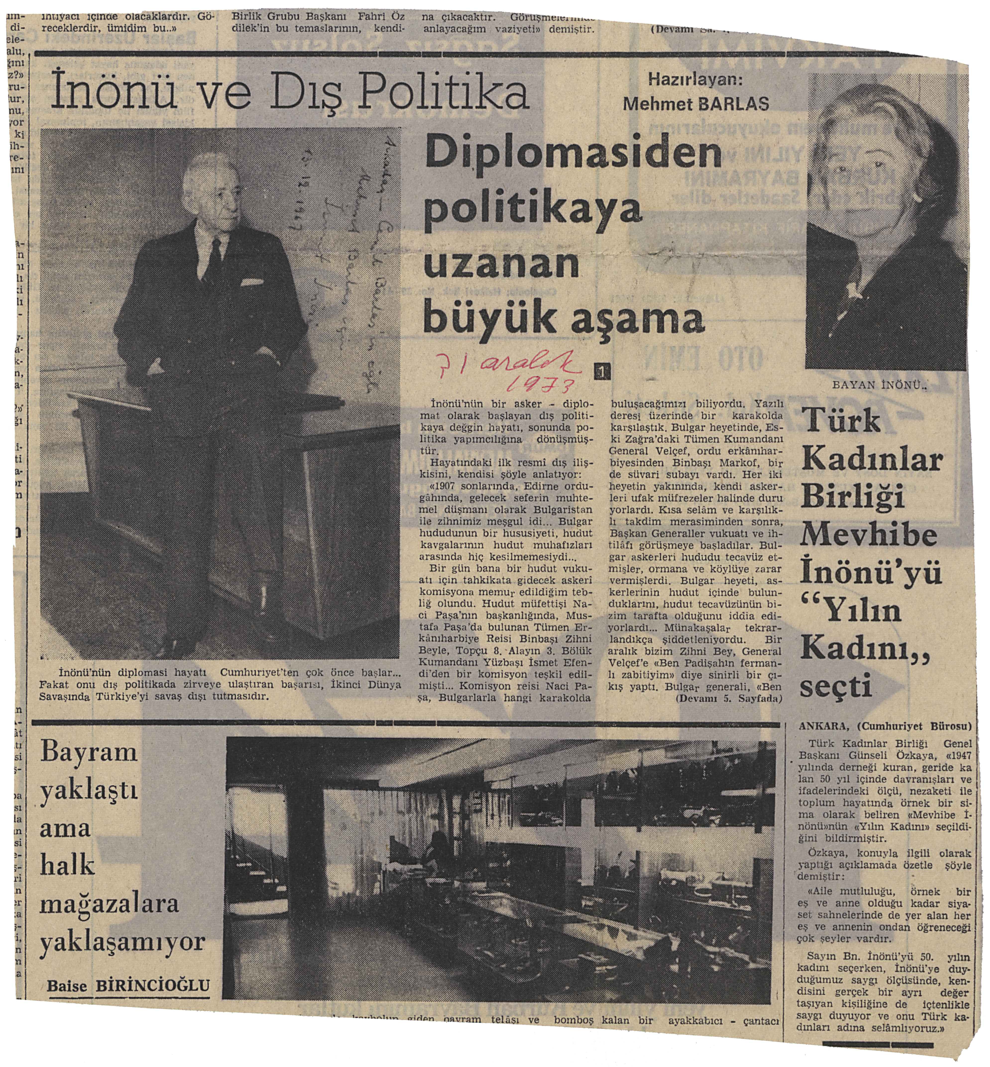 Clipping from Cumhuriyet newspaper dated December 31, 1973, related to İnönü, İsmet article