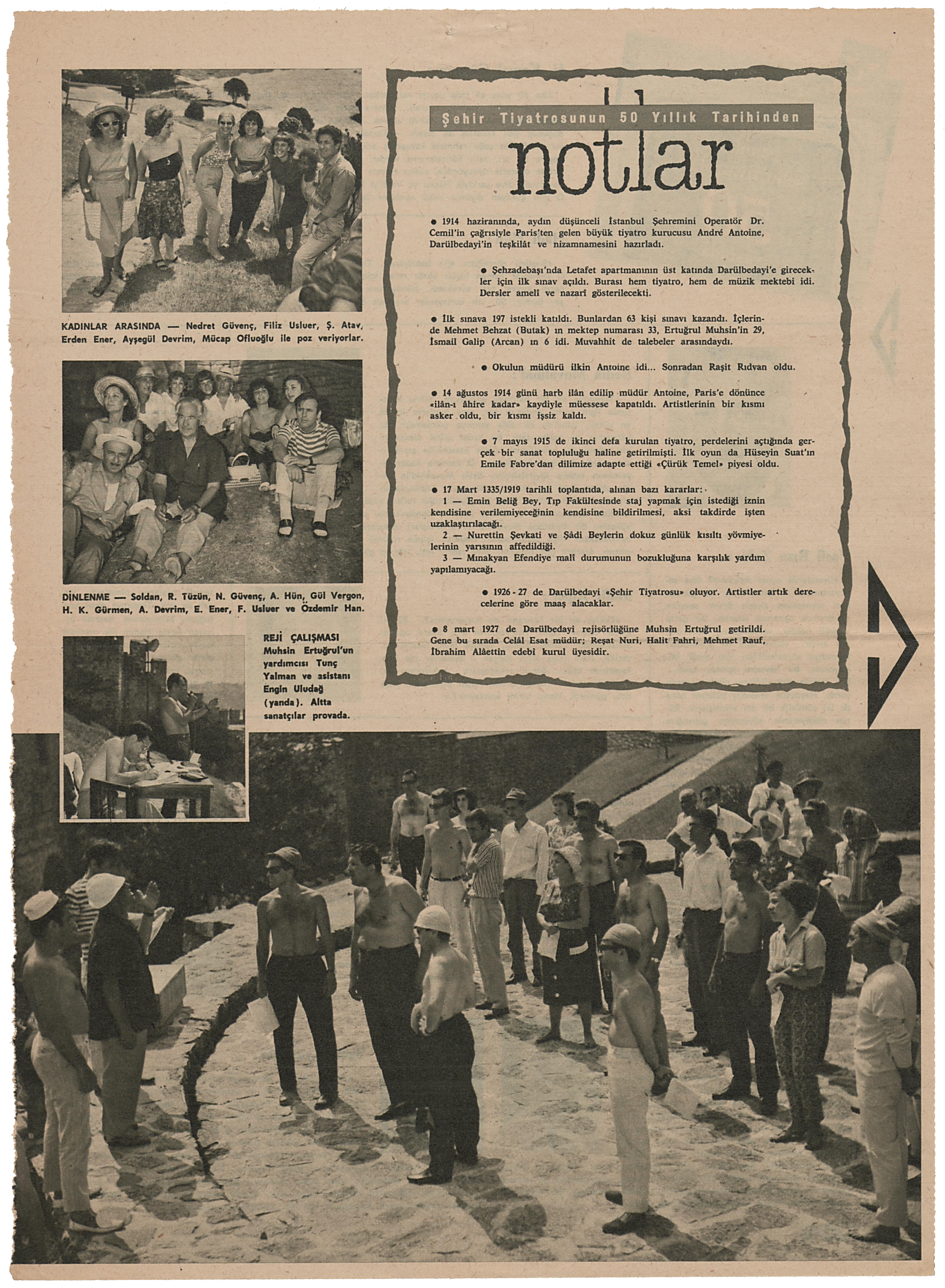Magazine page titled "İstanbul şehir tiyatroları 50 yaşında"