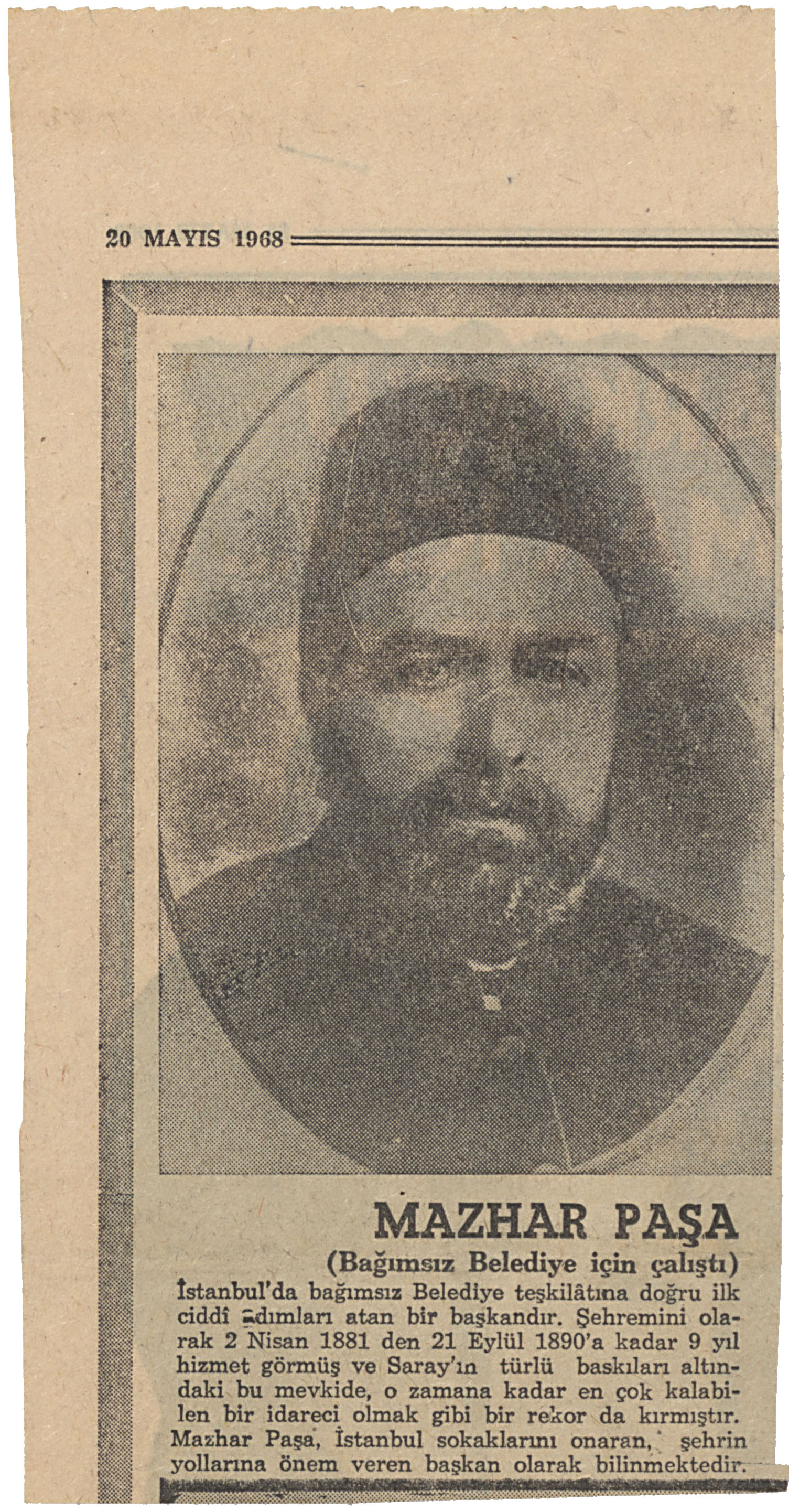 Clipping about Mazhar Pasha
