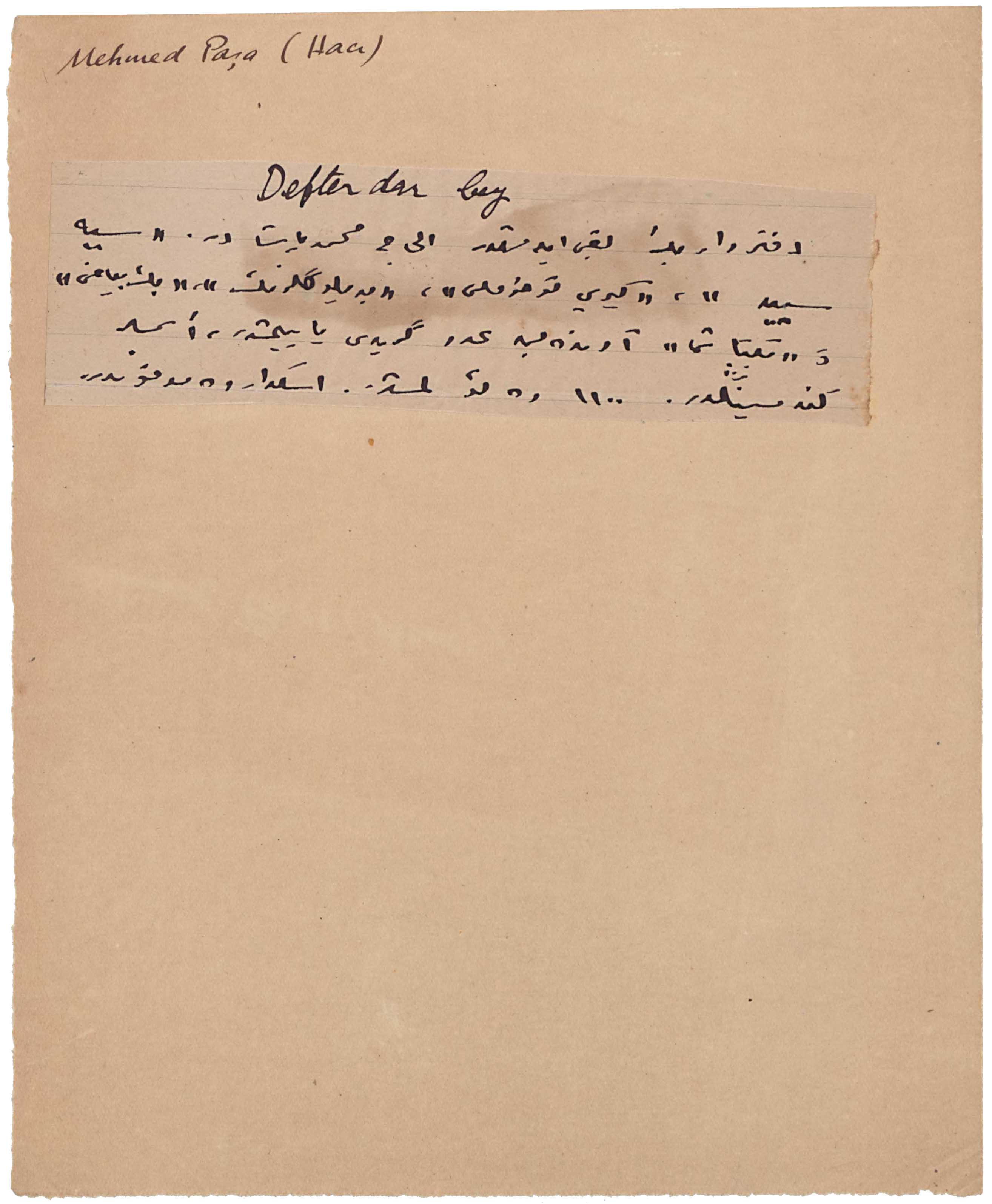 "Mehmed Paşa (Hacı)" ve "Defterdar Bey" başlıklı not