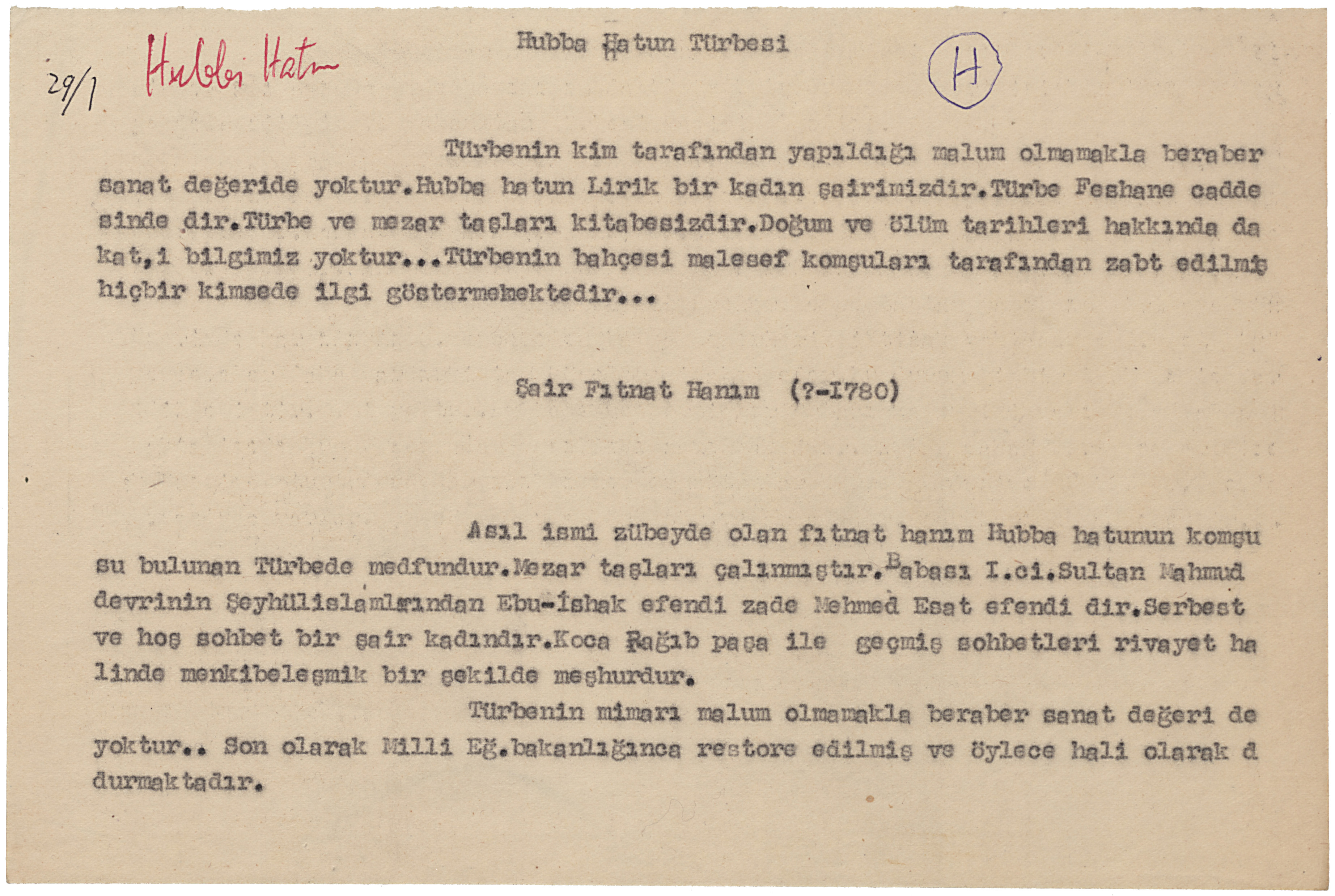 Text titled "Hubba Hatun Türbesi" ve "Şair Fıtnat Hanım (?-1780)" (Hubba Hatun Tomb and Poet Fıtnat Hanım (?-1780)