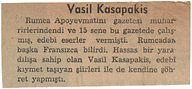 Clipping titled "Vasil Kasapakis"