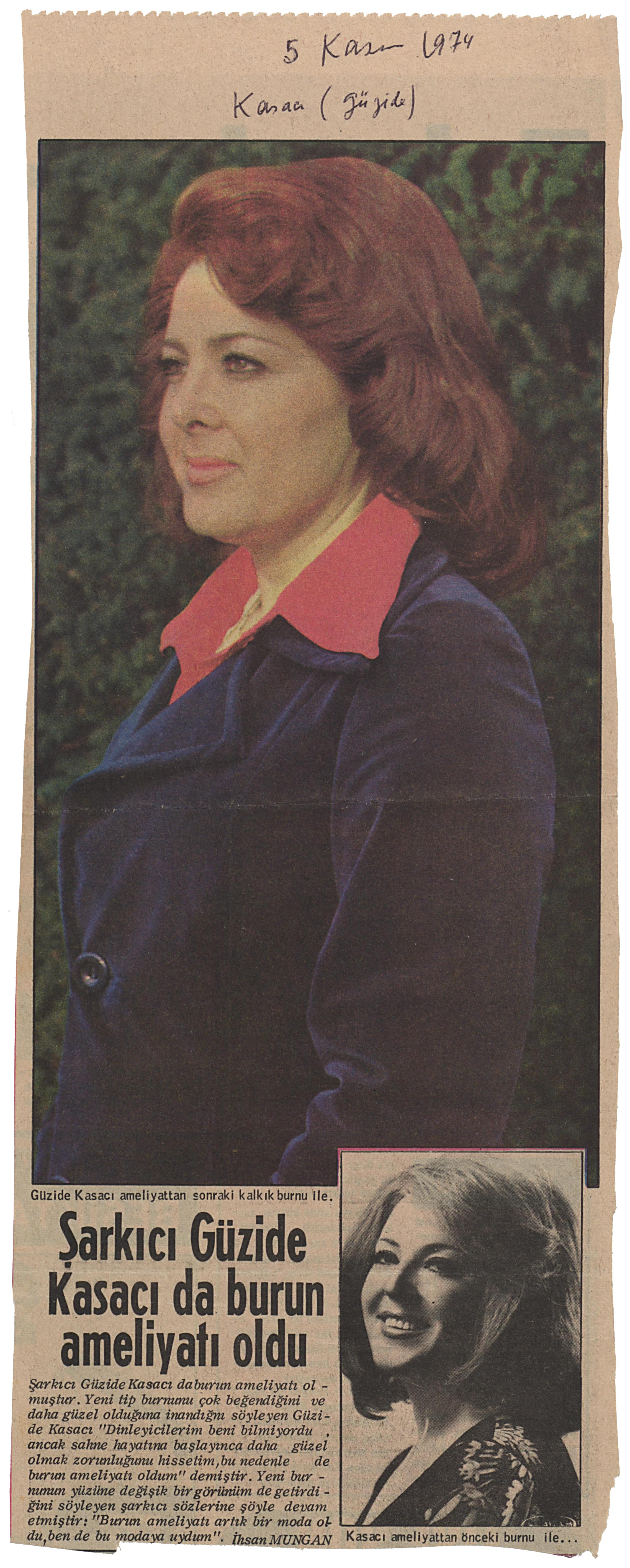 "Şarkıcı Güzide Kasacı da burun ameliyatı oldu" başlıklı kupür