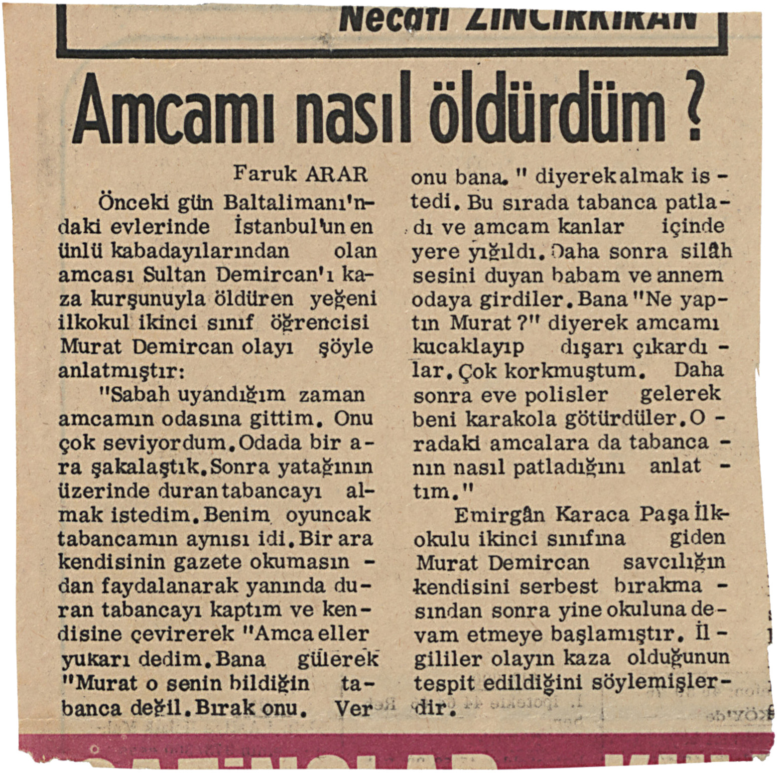 "Amcamı nasıl öldürdüm?" başlıklı kupür
